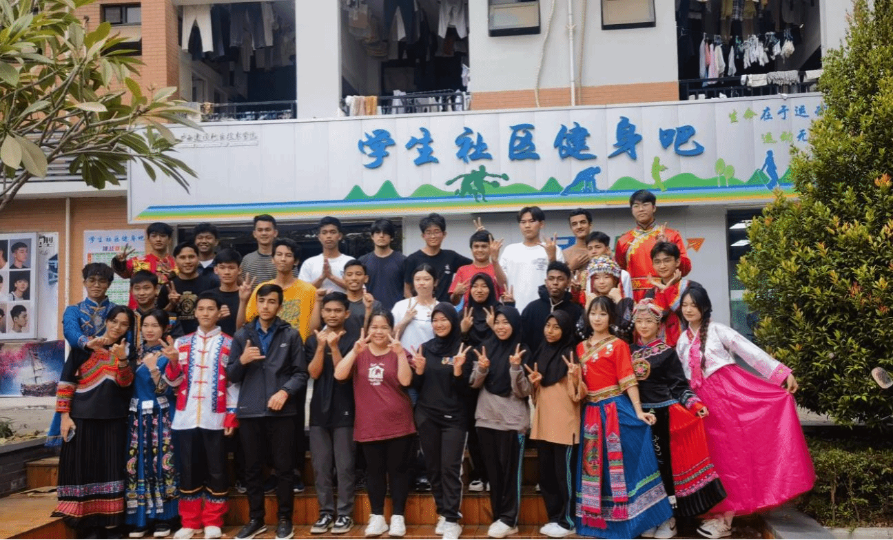 时逢腊月,冬日的校园依旧温暖如春,30余名同学们穿上属于自己民族的服装,与老师们一起来到健身吧广场。梁金来老师向同学们介绍了竹竿舞的文化,高杨杨老师现场教同学们辨识竹竿舞的节拍,市政学院的同学现场演示了竹竿舞的跳法,并邀请留学生们一同参与。