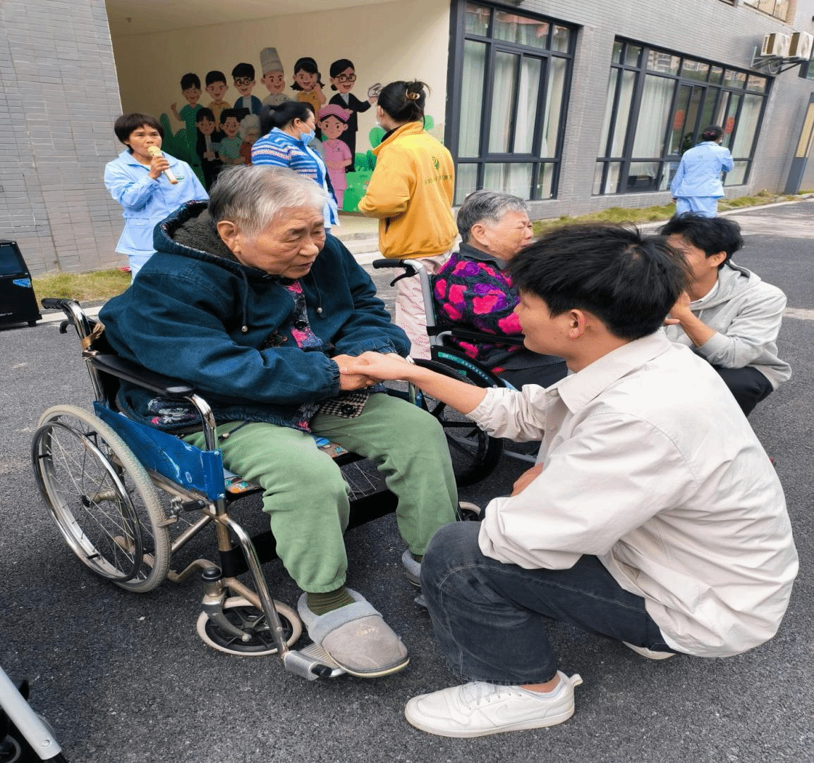 清风尚寒,春意已浓。本次植树活动,信息工程学院捐助了若干树苗,在养老院负责人的引导下,师生和养老院的老人共同开展了植树活动。大家两至三人一组,精神昂扬、干劲十足,有的踩锹挖坑、有的扶苗栽树、有的浇水培土,师生和老人合力将树苗种入土壤中,大家配合默契,植树现场充盈着忙碌的身影和欢声笑语,呈现出一派如火如荼的劳动景象。新种下的树苗迎风挺立,在明媚春光下焕发无限生机,为孝慈苑养老服务中心增添了一片新绿。活动结束后师生们又对老人进行了慰问,倾听老人心声、陪伴老人阅读等,活动现场其乐融融。