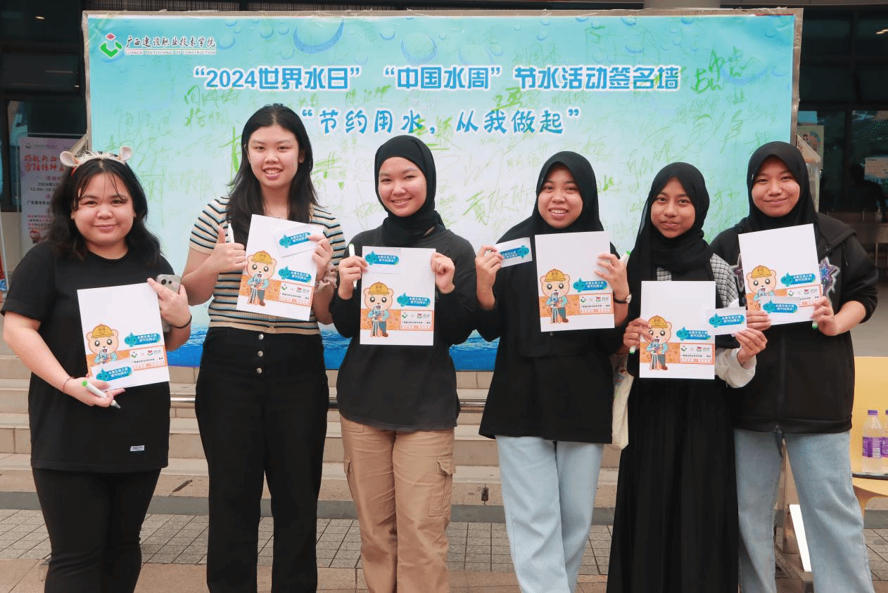 到场的师生积极参与到“节约用水,从我做起”签名活动中来,在签名墙上签上自己的名字。后勤管理处的老师们向在场师生普及水利知识和相关法律法规政策,组织开展2024年“世界水日”“中国水周”有奖知识问答。