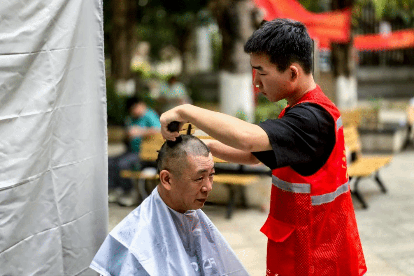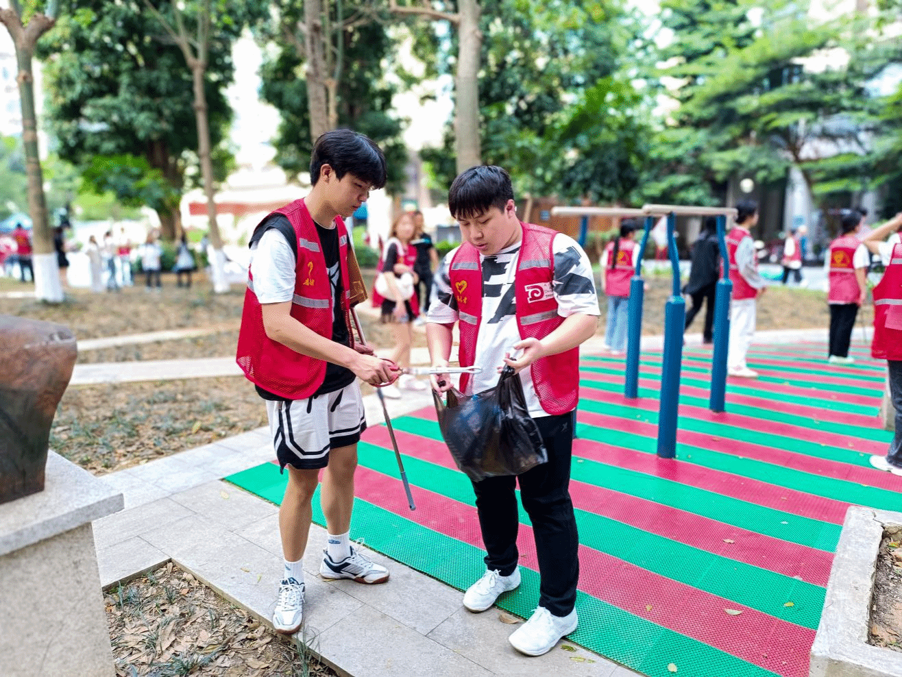 当天下午,志愿者们准时到达相贤社区,迅速投入到各项志愿服务活动中。活动包括几个部分:首先开展的是由黄佳慧同学主讲的“践行雷锋精神,传承文秀风范”的闪闪红星微宣讲。在“社区邻里守望”志愿服务活动中,志愿者们与社区居民亲切交流,提供家电清洗、家务协助、公益理发、免费拍摄证件照等服务。“法耀八桂”志愿服务活动也在如火如荼地进行。志愿者们通过发放宣传资料、一对一讲解等形式,向社区居民普及防范电信诈骗知识。他们结合生动的案例,详细讲解电信诈骗的常见手段和防范措施,提醒居民提高警惕,保护好自己的财产安全;志愿者们还提供法律咨询服务,解答居民日常生活中的法律问题,进一步增强他们的法治意识。在便民志愿服务活动中,志愿者们更是发挥了不怕脏、不怕累的精神,开展环境整治活动,清理社区内的垃圾和杂物,让居民们感受到了来自社会的关爱和温暖。