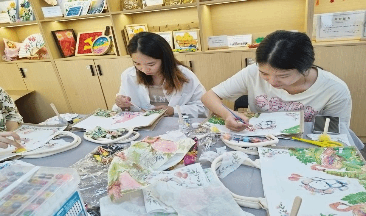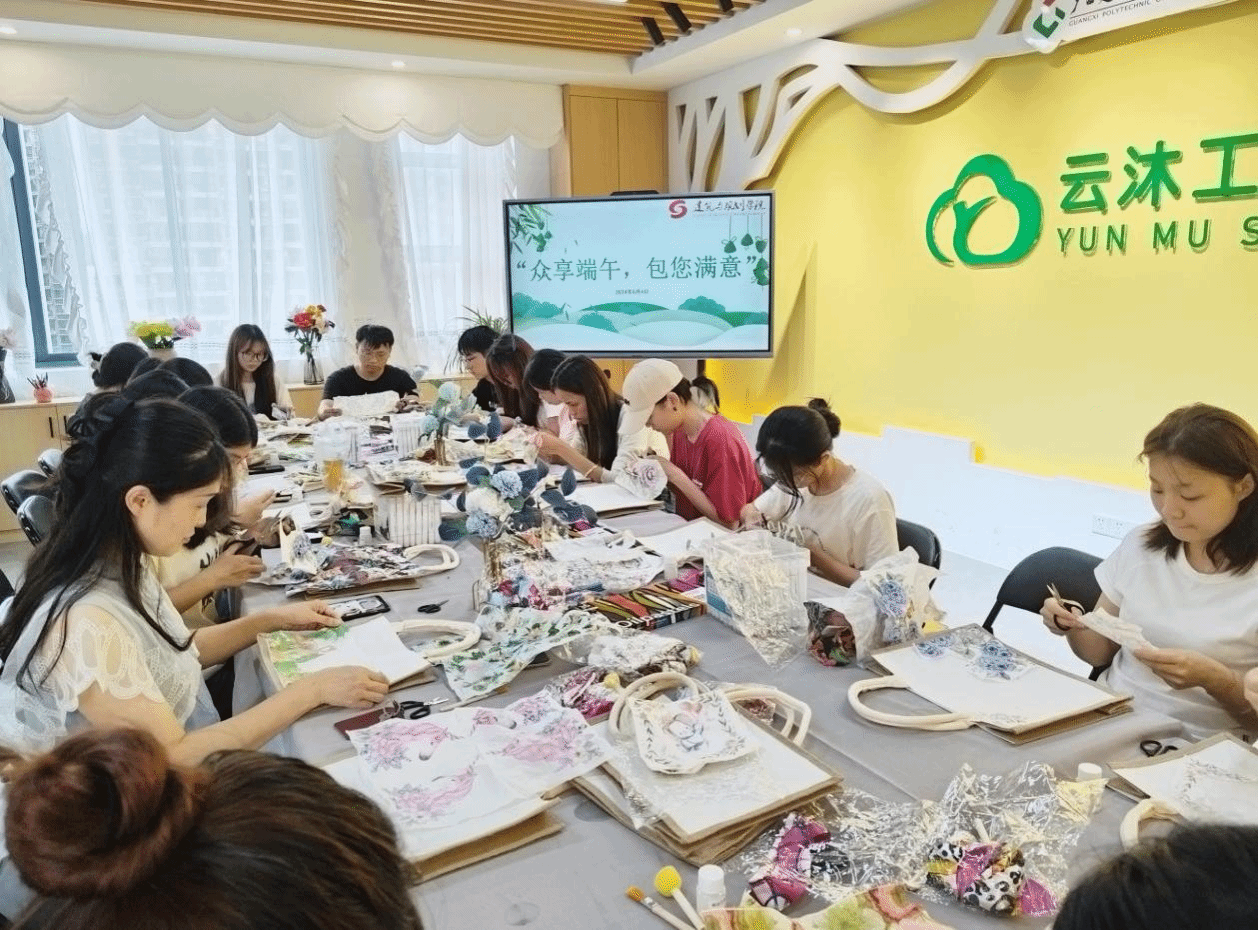 粽情端午,除了包粽子以外,亲手制作“端午款”专属包包也是惊喜满分。6月4日下午,在6教云沐工作室,师生们早早来到现场,选择心仪的图案,精心布局构图,巧手粘贴绘制,一款款别具特色的包包跃然眼前。