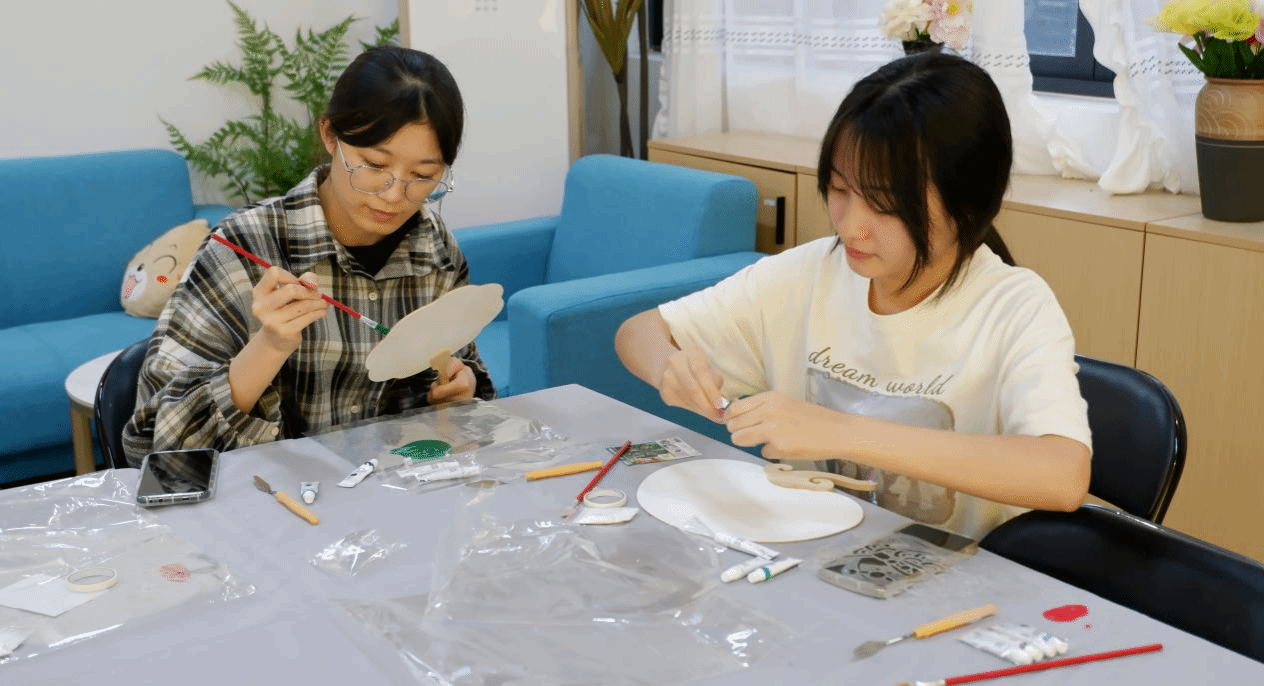 端午节不仅有吃粽子、赛龙舟、饮雄黄酒等的传统习俗,还有赠送扇子的习俗。扇子不仅可以扇风纳凉,还能避暑驱邪。小小团扇,传递着深厚的文化底蕴。选好扇面及图案后,涂上底色,把磨切好的pvc图案拓印上去,一把把“端午”主题团扇就制作而成。炎热的夏天,挥动手中的团扇,清风相伴的同时暂得一隅安宁。