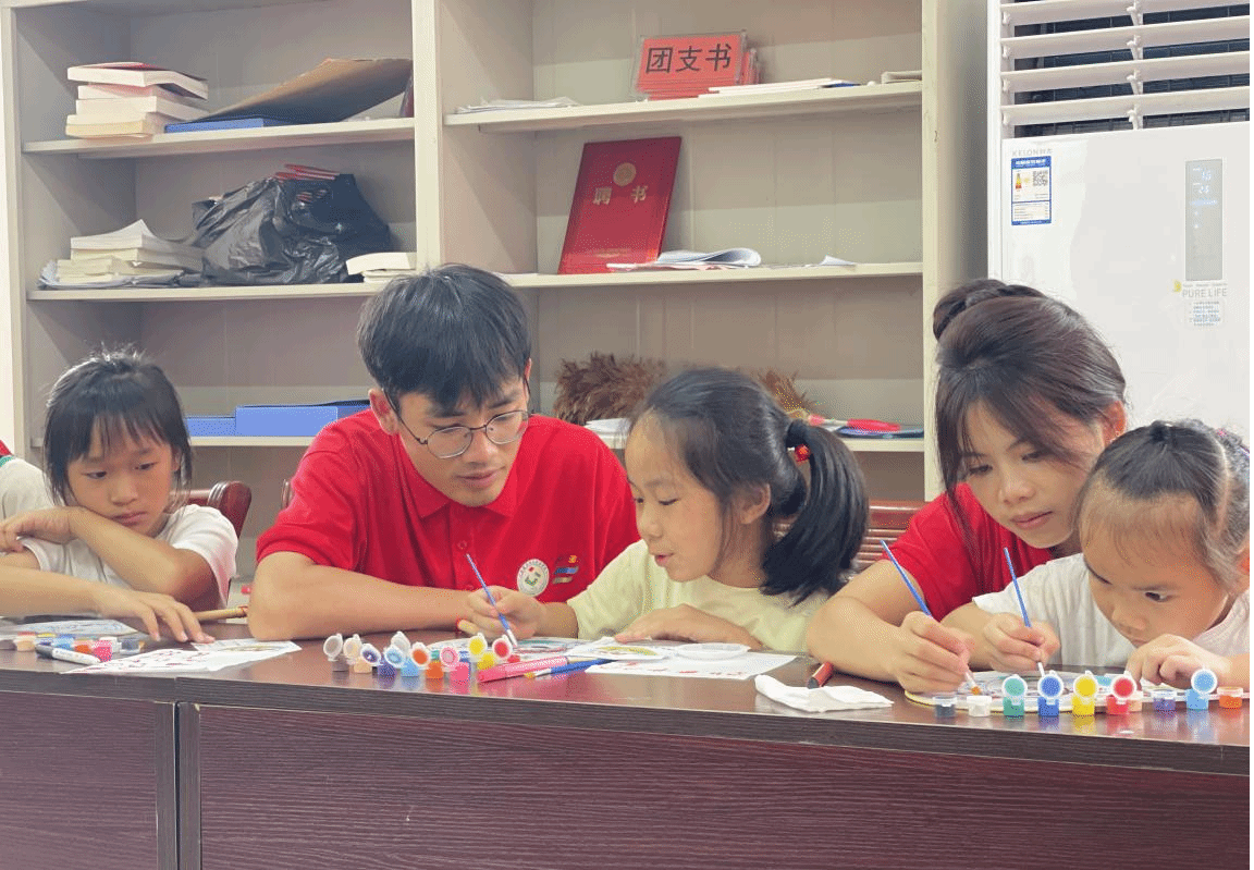 美育赋能成长,艺术浸润心灵。7月18—19日,实践团先后带领两庄村、下冻社区的小朋友们开展了生动有趣的红色书画活动。带队的石明成老师结合动画《三十六个字》介绍了汉字中的象形文字,并邀请小朋友们通过笔墨书写象形文字,感受传统文化的魅力。小朋友们还积极参与到团扇绘画和手工制作活动中,运用简单的线条和丰富多彩的颜色,勾勒出一幅幅精美的绘画作品。