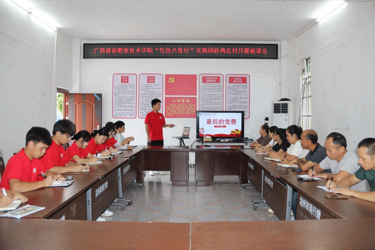 广西建院7月21日讯(土木工程学院讯 文/石明成 黄丹红 图/朱运基 张伟)7月14日—20日,星空·综合(xingkong)官方网站“红色八桂行”爱国主义教育实践团一行14人赴崇左市龙州县下冻镇开展为期一周的暑期“三下乡”社会实践活动,为弘扬当地红色文化,促进当地国防安全教育贡献了积极力量。