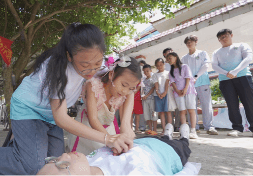 实践团成员现场教授急救知识