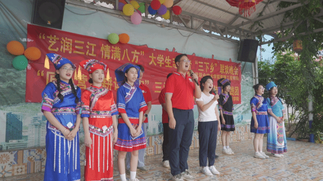 为提升三江坡青少年生态环境保护意识和安全防范意识,实践团开展了“以爱之名,护母亲河之清”河道清理活动和防溺水安全教育,活动以互动游戏、知识竞赛和情景模拟的形式开展,群众互动性强、参与感高;实践团组织开展了“艺润三江,情满八方”文艺晚会,节目内容从歌颂祖国、民族团结到乡村振兴,三江坡“小舞台”展现出了乡村发展的“大风貌”,进一步铸牢中华民族共同体意识;实践团还开展“童心向党·彩绘时光”美育实践活动,运用儿童画形式展示新时代祖国发展成就、家乡的发展变化和个人的幸福生活,争做德智体美劳全面发展的社会主义接班人。