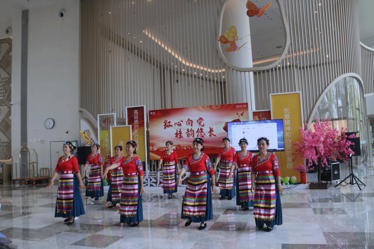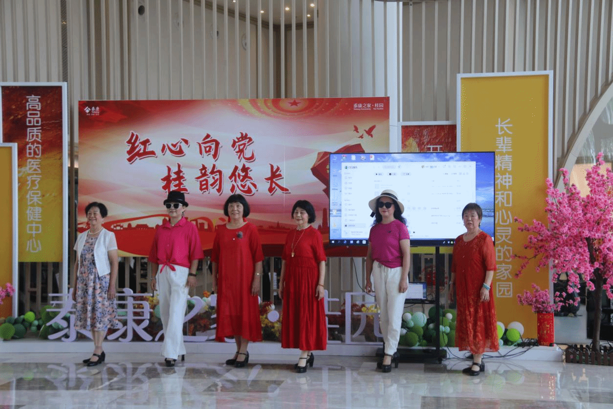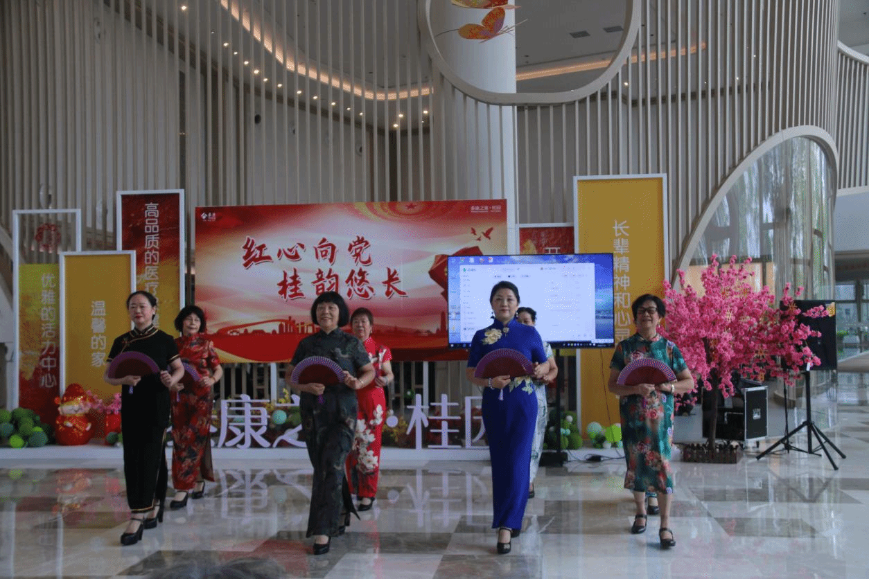 广西建院7月30日讯(工会 黄军萍)为庆祝中国共产党成立103周年,积极弘扬敬老爱老的优良传统,日前,sports组织离退休教职工代表和夕阳红艺术团共40余人赴医养社区泰康之家桂园慰问演出。