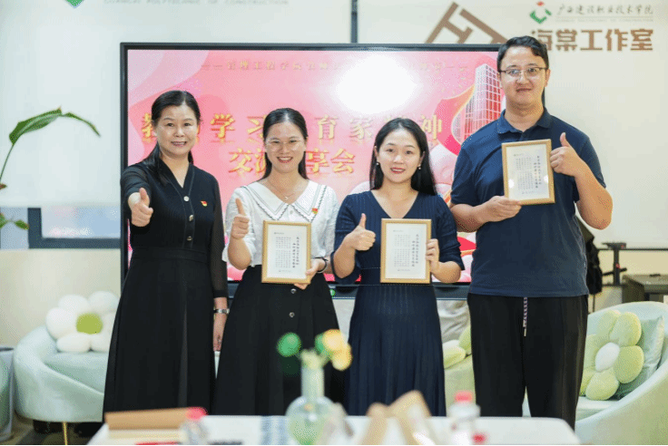 文桂萍教授与郭海棠副书记向老师们颁发学习教育家精神摆件,现场交流热烈氛围浓厚。