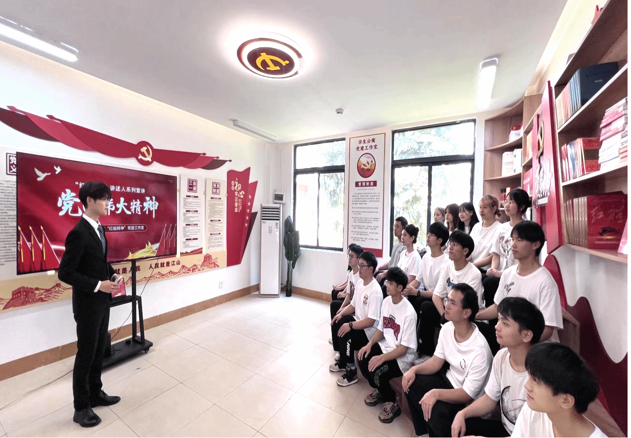 以“开天辟地、敢为人先的首创精神,坚定理想、百折不挠的奋斗精神,立党为公、忠诚为民的奉献精神”的红船精神内涵为指导,培育了一支“红船精神”讲述人师生队伍,以革命文化、社会主义先进文化、中华民族优秀传统文化、社会主义核心价值观作为核心,在“红船精神”教育实践基地定期开展理想信念主题宣讲,结合易班等新媒体平台进行线上展播,推进红色教育进宿舍,引导广大师生继承革命传统、传承红色基因,增强文化自信和理论自信。
