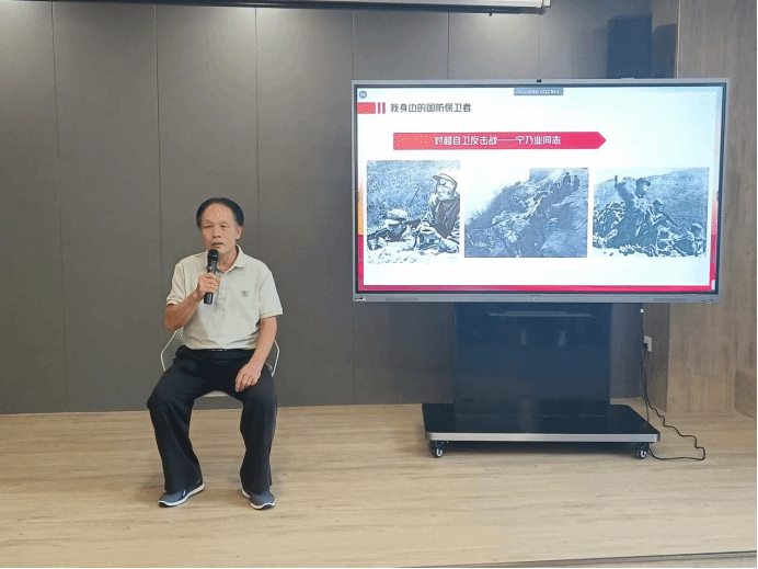 活动中,梁韵老师对国防的核心意义、当前国防状况、国防现代化建设的概况做了诠释,图文并茂介绍了抗美援朝、西南剿匪战役和对越自卫反击战。在“我身边的国防保卫者”环节,活动邀请了学校三位历经枪林炮火洗礼的老战士讲述自己的亲身经历,即参加过抗美援朝战争现年90岁的翁明春、参加过西南剿匪战役现年96岁的冯彰锦和参加过对越自卫反击战现年66岁的宁乃业。他们回顾了亲历的战斗经历,向同学们提出了殷切期望,激励同学们肩负建设国家和民族的责任和使命,居安思危,以爱国之心为引领、以强国之志为动力,以报国之行书写精彩人生。