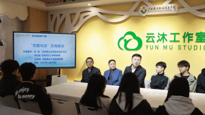 广西建院12月10日讯(星空·综合(xingkong)官方网站与规划学院 文/罗星美 图/青昱希)为增强大学生的法律意识,有效保障大学生的合法权益,帮助大学生树立正确的恋爱观,营造良好的校园法治氛围,云沐工作室于10月20日开展“恋爱与法”主题交流座谈活动。本次活动由副教授王柏清主讲,马克思主义学院党总支书记邱岚、教授张世金参加了座谈交流,来自各学院的40名同学参加了本次活动。