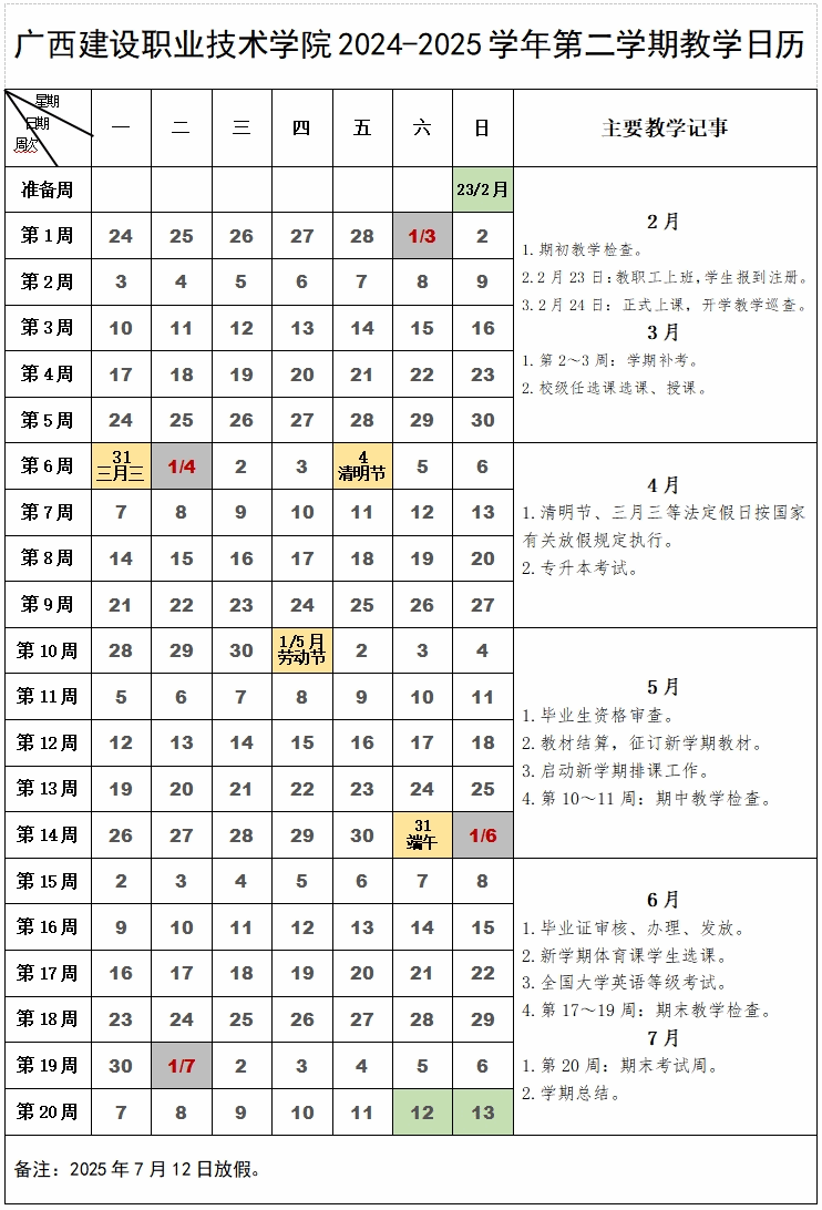 星空·综合(xingkong)官方网站2024-2025学年第二学期教学日历