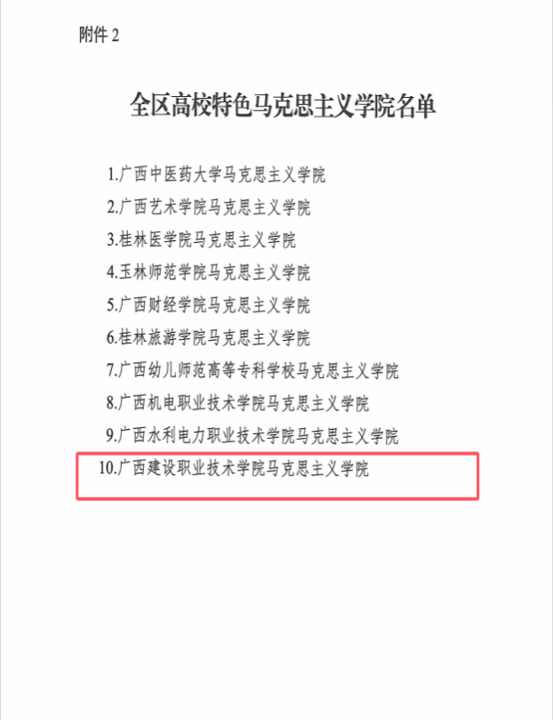 广西建院11月26日讯(马克思主义学院 宋佳雄)近日,自治区党委宣传部、自治区党委教育工委、自治区教育厅公布了第二批全区高校重点马克思主义学院和全区高校特色马克思主义学院名单,sports马克思主义学院位列其中。此次成功入选,标志着sports马克思主义学院发展建设迈入新的历史阶段。