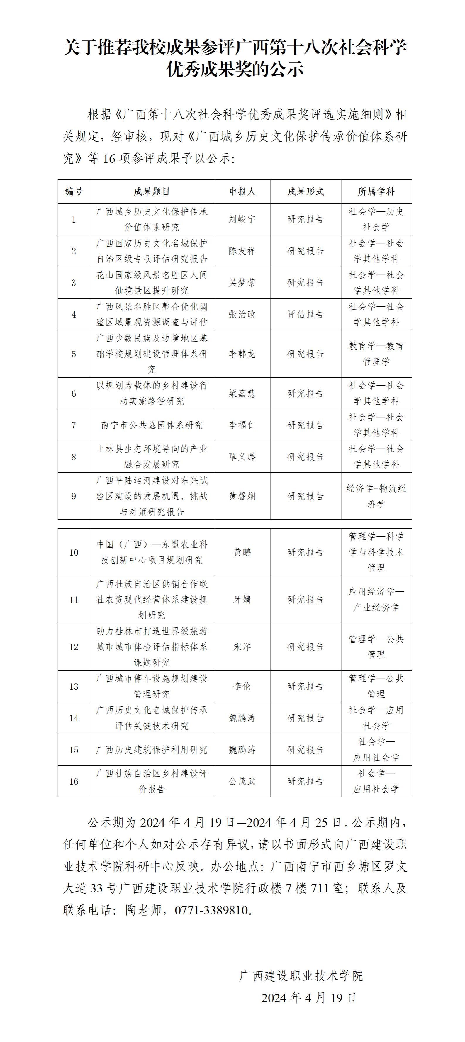 关于推荐sports成果参评广西第十八次社会科学优秀成果奖的公示