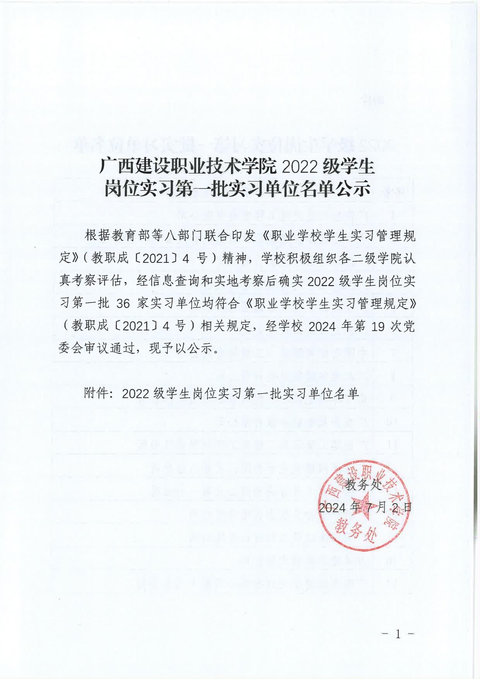 星空·综合(xingkong)官方网站2022级学生岗位实习第一批实习单位名单公示