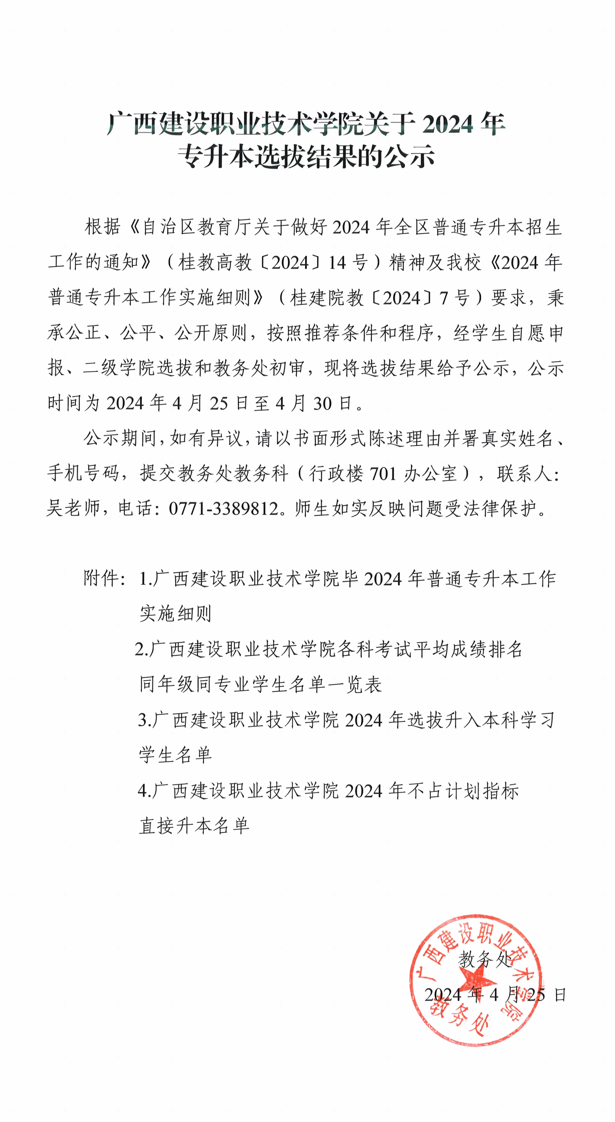 星空·综合(xingkong)官方网站关于2024年专升本选拔结果的公示