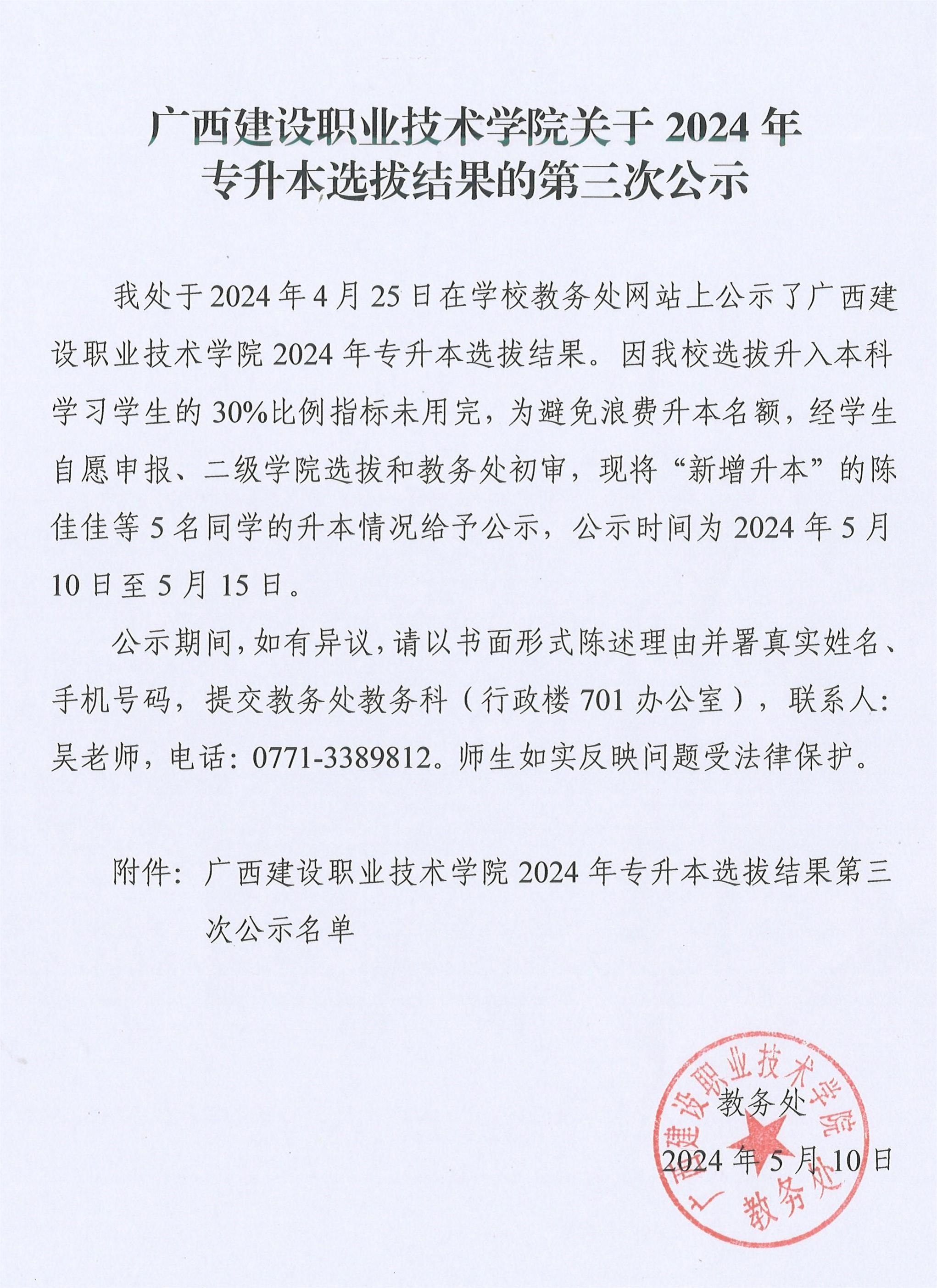 星空·综合(xingkong)官方网站关于2024年专升本选拔结果的第三次公示