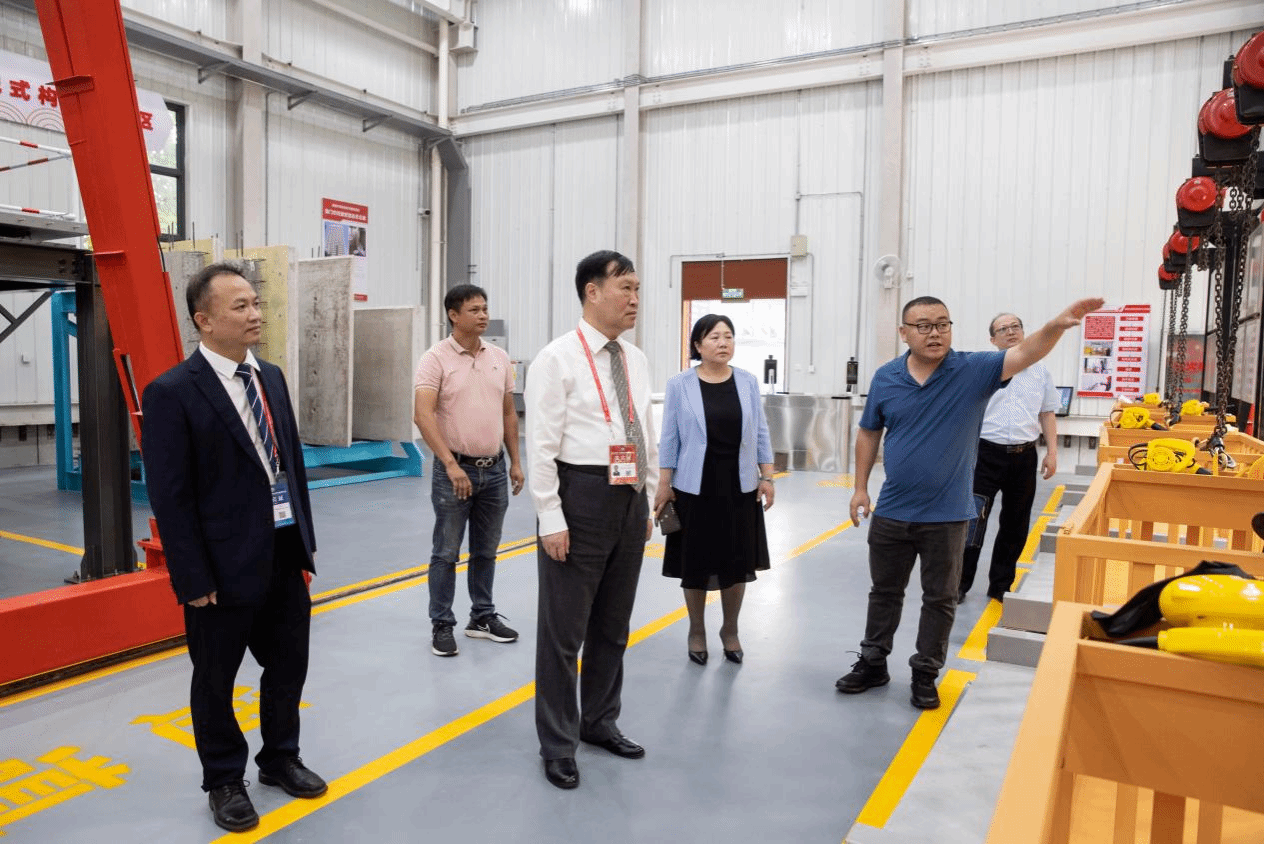 住房城乡建设部人事司一级巡视员何志方(左三)参观sports装配式星空·综合(xingkong)官方网站人才训练基地