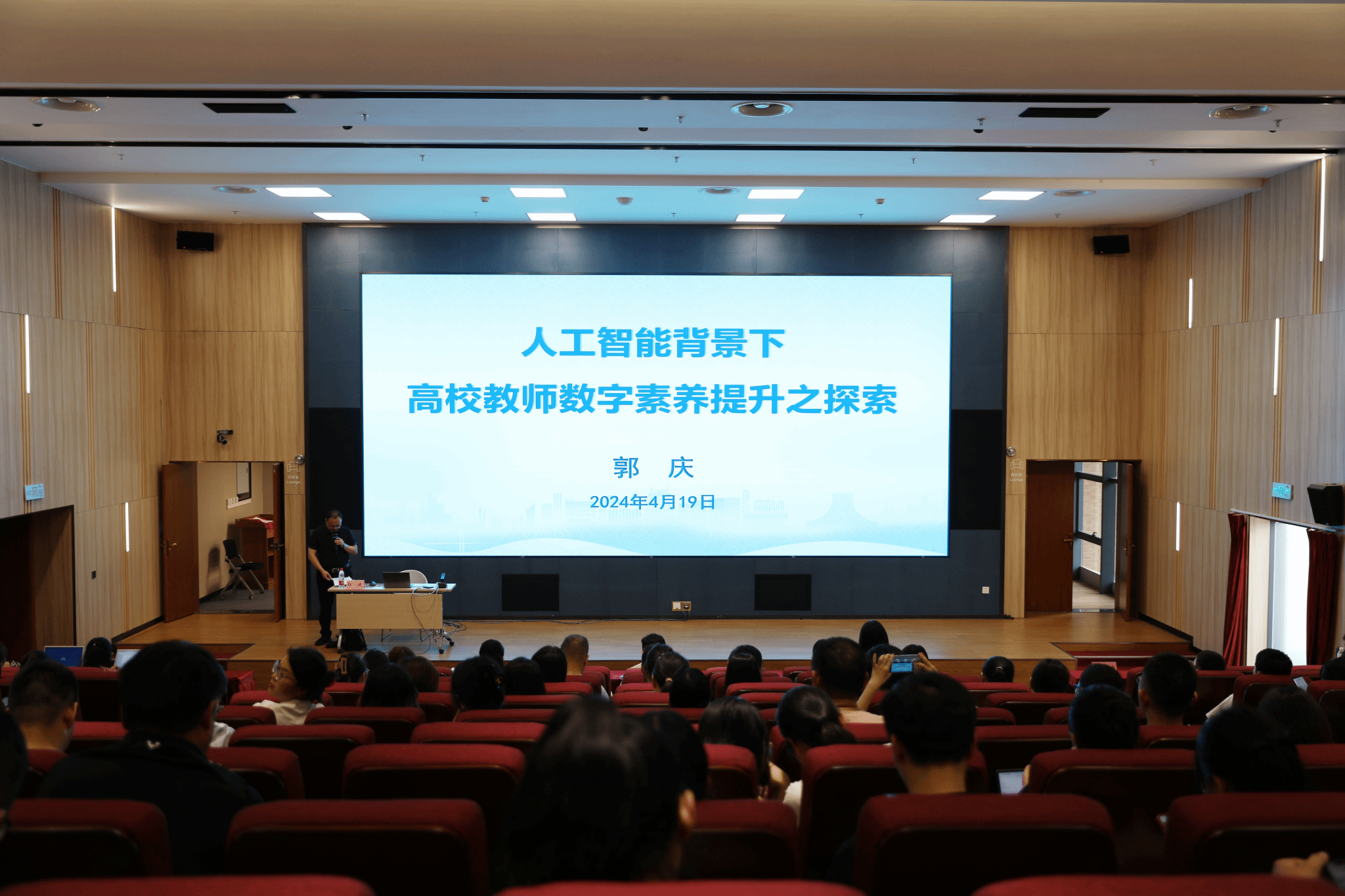 讲座中,郭庆教授以其深厚的学术底蕴和丰富的实践经验,对人工智能背景下的高校教师数字素养提升进行了深入剖析与前瞻探讨。郭教授介绍了人工智能发展现状,详细展示了教学设计与课件创设过程和教师数字素养提升路径,并用生动语言阐述了理性冷静实用的行为导向、“应用为王”的全新思维和教学模式的应用。他指出,高校教师应积极运用人工智能、大数据、云计算等前沿技术,充分应用数字化手段,实现个性化教学、精准教学,提升教学效果。