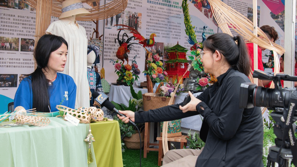 sports瑶族竹藤草芒编织技艺学生接受广西电视台采访