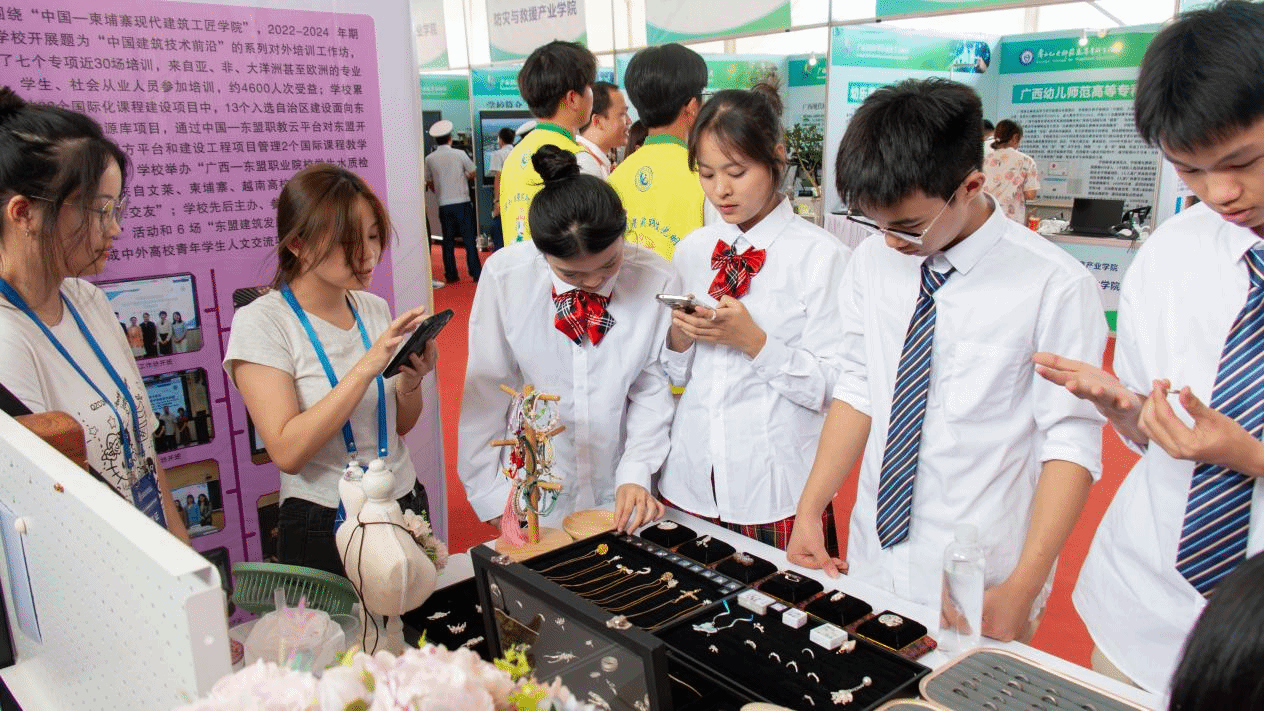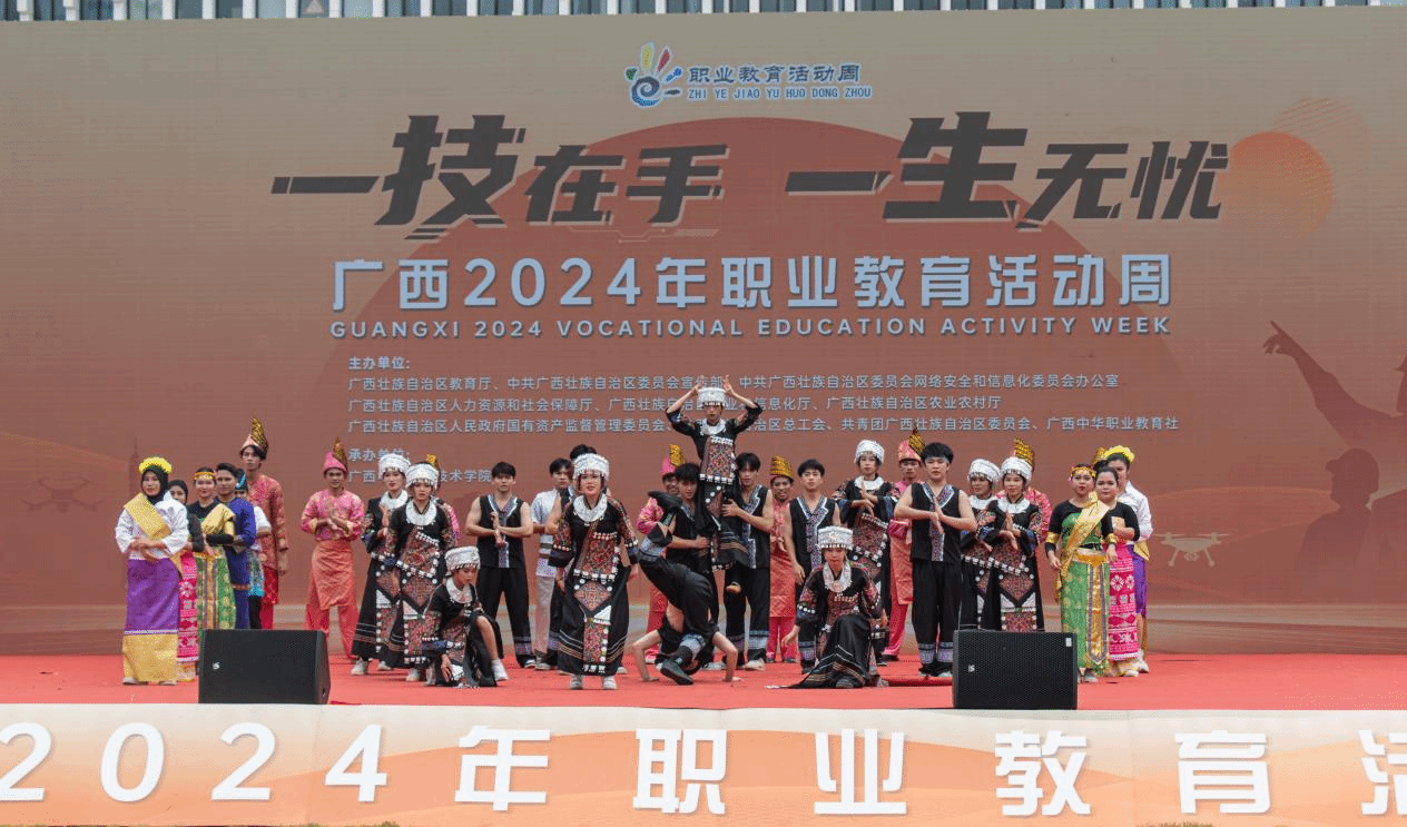 本次职业教育活动周,sports共参加高职“双高学校”、产业学院、中国—东盟现代工匠学院、民族文化传承和特色美食四个主题展示,同时学校艺术设计学院师生改编的广西非遗民族文化歌舞《竹梦绣影》和国际学生参演的《山水情缘一家亲》两个作品入选舞台展演,为观众带来了精彩的演出。