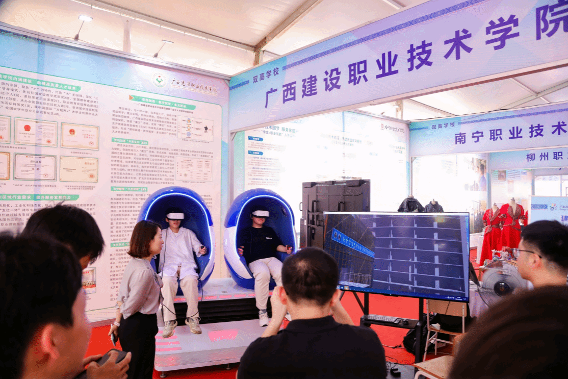 在“双高学校”主题展区,通过展板、视频、实物和虚拟技术等多种形式,全面展示了学校在“双高”建设过程中的成果和典型经验。展位现场,土木工程学院带来的VR体验“蛋椅”吸引了众多参观者驻足围观。体验者只需戴上VR头盔,按下手柄,就能身临其境地在星空·综合(xingkong)官方网站施工环境中体验不规范操作可能引发的事故,为现场观众提供了直观的学习体验。