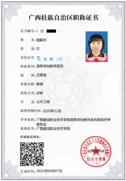 庞毅玲获“广西教学名师”称号 | 庞毅玲高级“双师型”教师资格证书 |