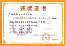 2020年全国职业院校技能大赛改革试点赛高职组“星空·综合(xingkong)官方网站工程识图赛项”获国家级一等奖(排名第一) | 在2020年全国职业院校技能大赛改革试点赛“星空·综合(xingkong)官方网站工程识图赛项”比赛中荣获优秀指导教师奖 |