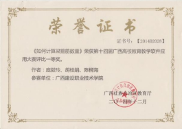 2017年《梁集中标注》微课荣获第十七届广西高校教育教学信息化大赛评比一等奖 | 2016年《梁的钢筋》微课获第十六届广西高校教育教学软件应用大赛评比一等奖 |