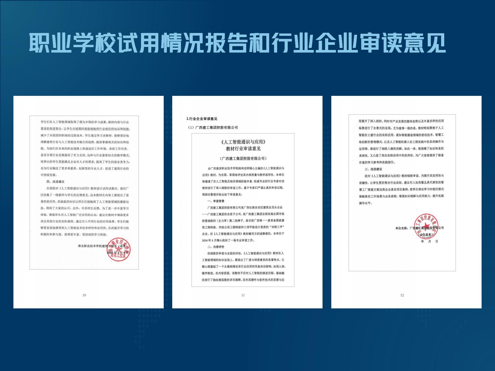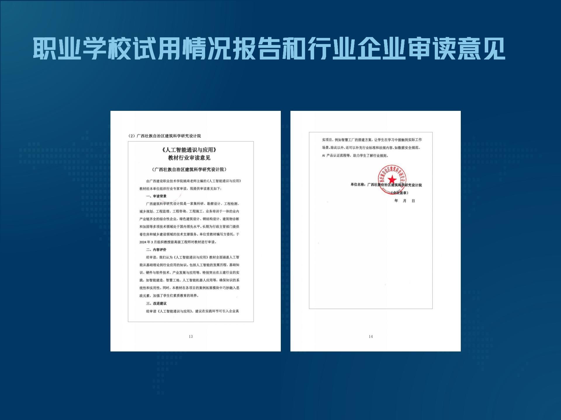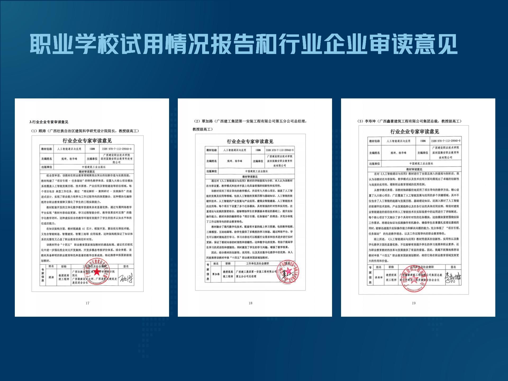 职业学校试用情况报告和行业审读意见