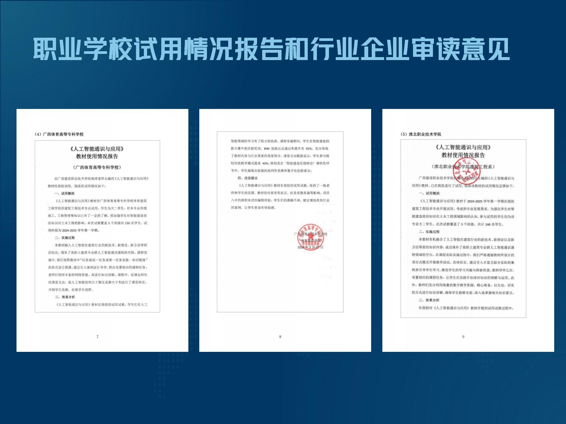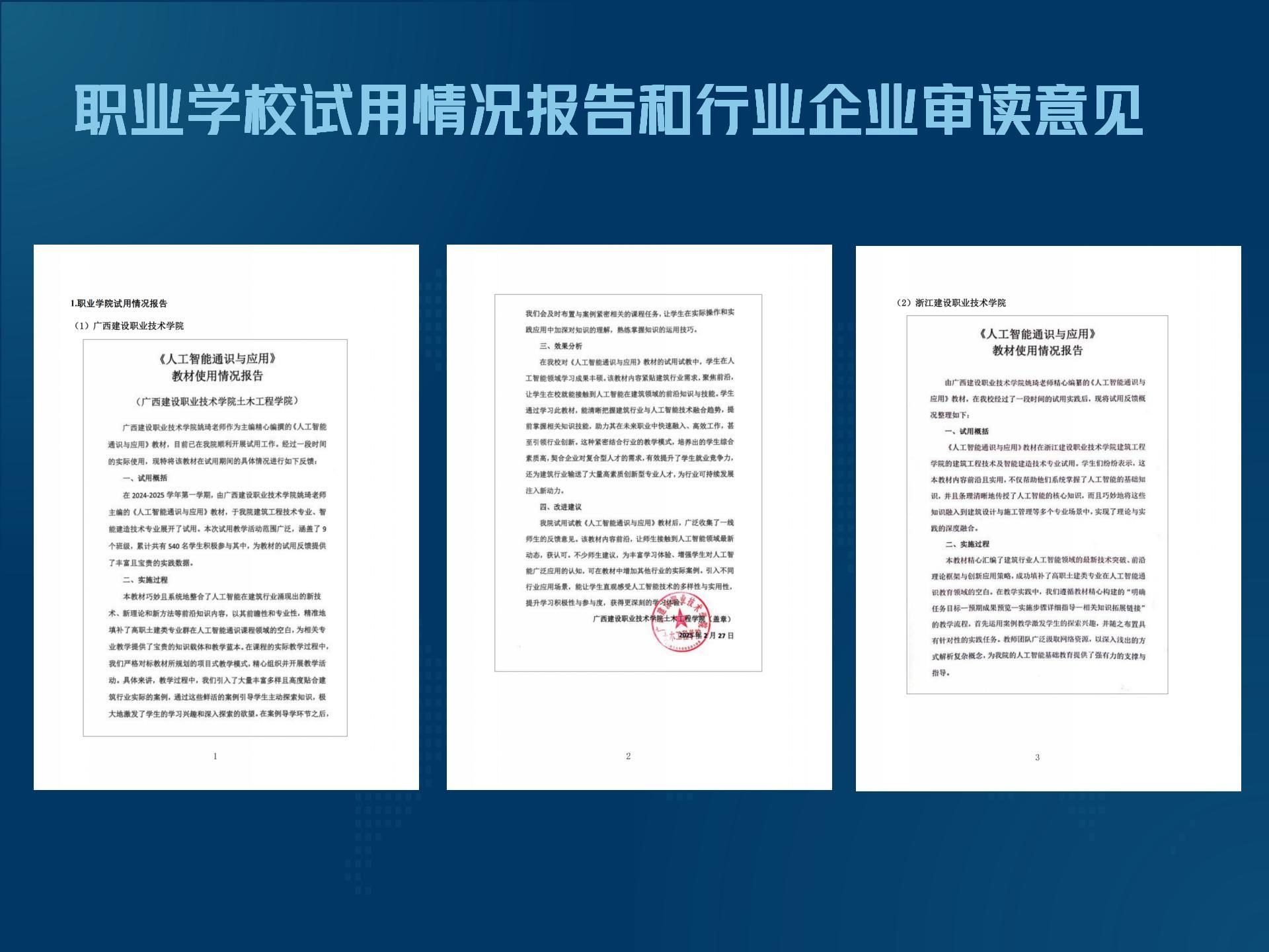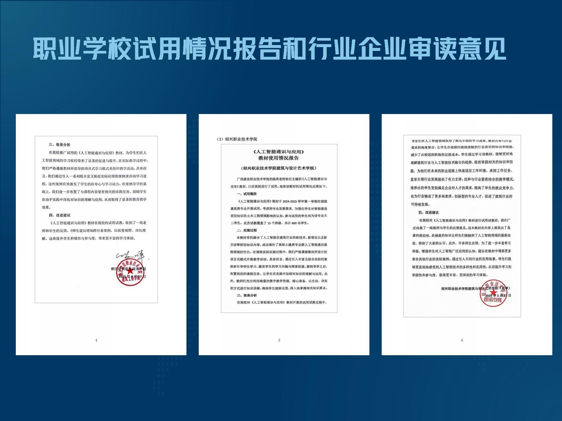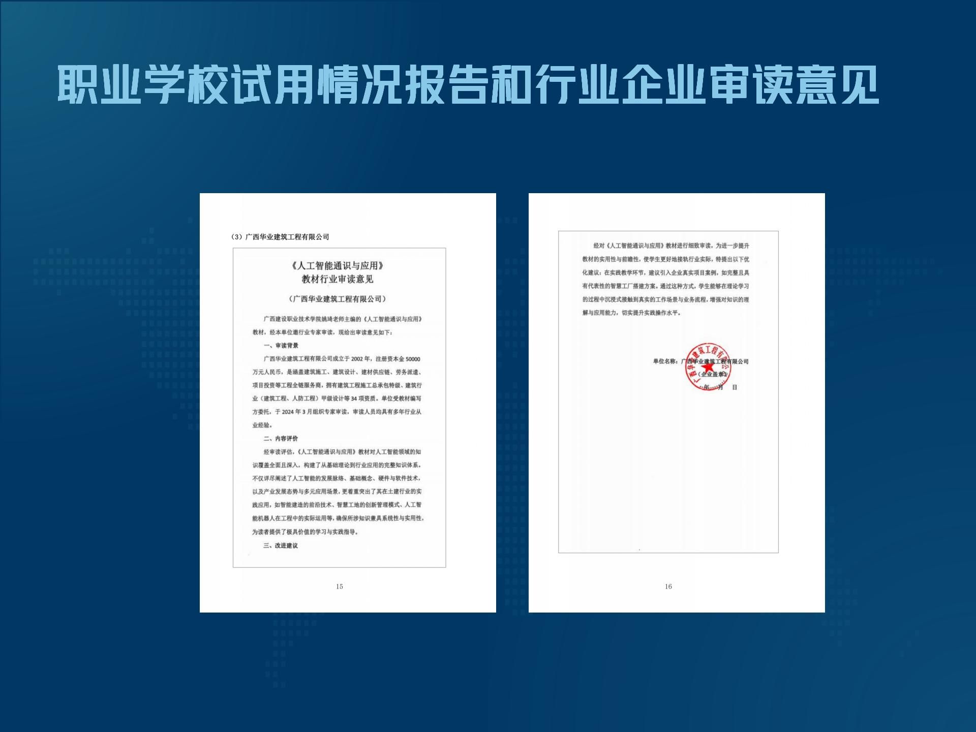 职业学校试用情况报告和行业审读意见