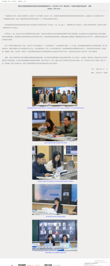 5.5 教材应用于东南亚教育部长组织技术教育发展区域中心(SEAMEO TED)联合举办“中国水处理技术的应用”培训项目,由主编段春毅、杨文婷主讲。
