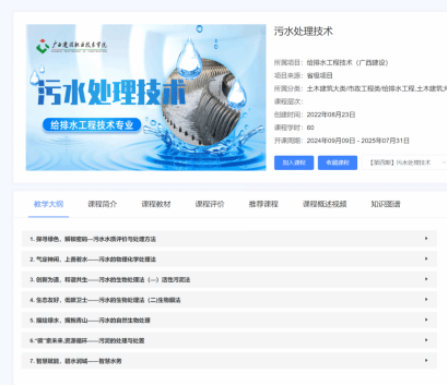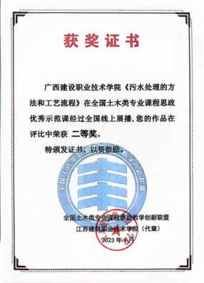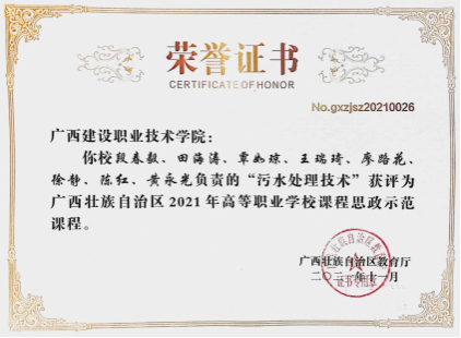 4.4 教材资源《污水处理技术》获广西壮族自治区职业教育课程思政示范课