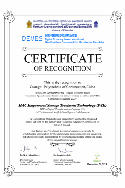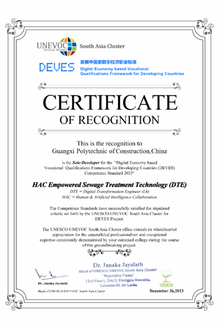5.3教材内容对接数字化重构职业标准《污水处理员》获批联合国教科文组织职业教育中心南亚中心发展中国家数字经济职业标准开发暨斯里兰卡数字经济职业标准开发双认证项目