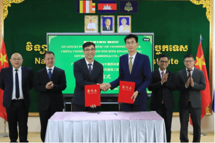 5.2 为积极配合自治区打造面向东盟的职业教育开放合作创新高地建设,教材主编柏挺代表sports与中国星空·综合(xingkong)官方网站第四工程局(柬埔寨)有限公司,在中国—柬埔寨现代星空·综合(xingkong)官方网站工匠学院举行签订了合作协议。共建职业教育标准,共享职业教育资源,共育高技能人才,深化产教融合,服务国家优质产能“走出去”战略,为打造中国职业教育国际合作特色品牌增添新动力。