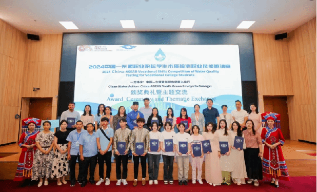 5.7 sports主办2024中国—东盟职业院校学生水质检测职业技能邀请赛,来自中国、东盟共5个国家17支参赛队共同竞技,来自柬埔寨、印度尼西亚、老挝、泰国等东盟国家生态环境主管部门的官员观摩了比赛.