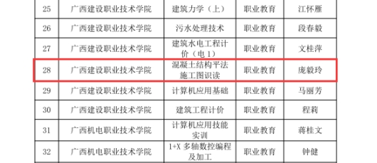 3.6教材配套课程《混凝土结构平法施工图识读》获评自治区级