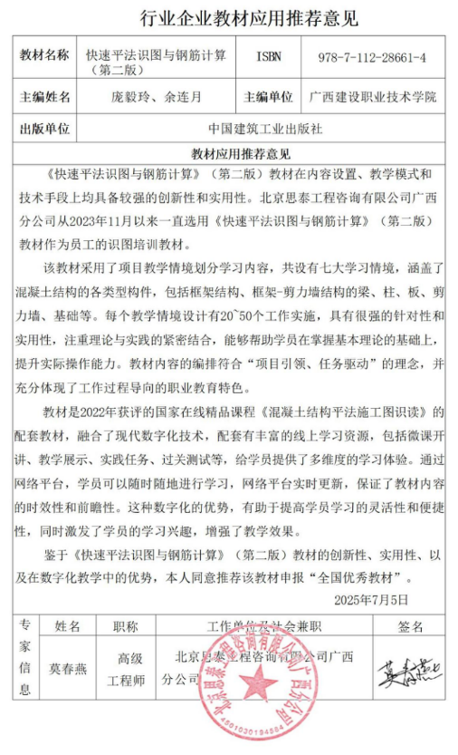 4.3.1 北京思泰工程咨询有限公司广西分公司教材应用推荐意见