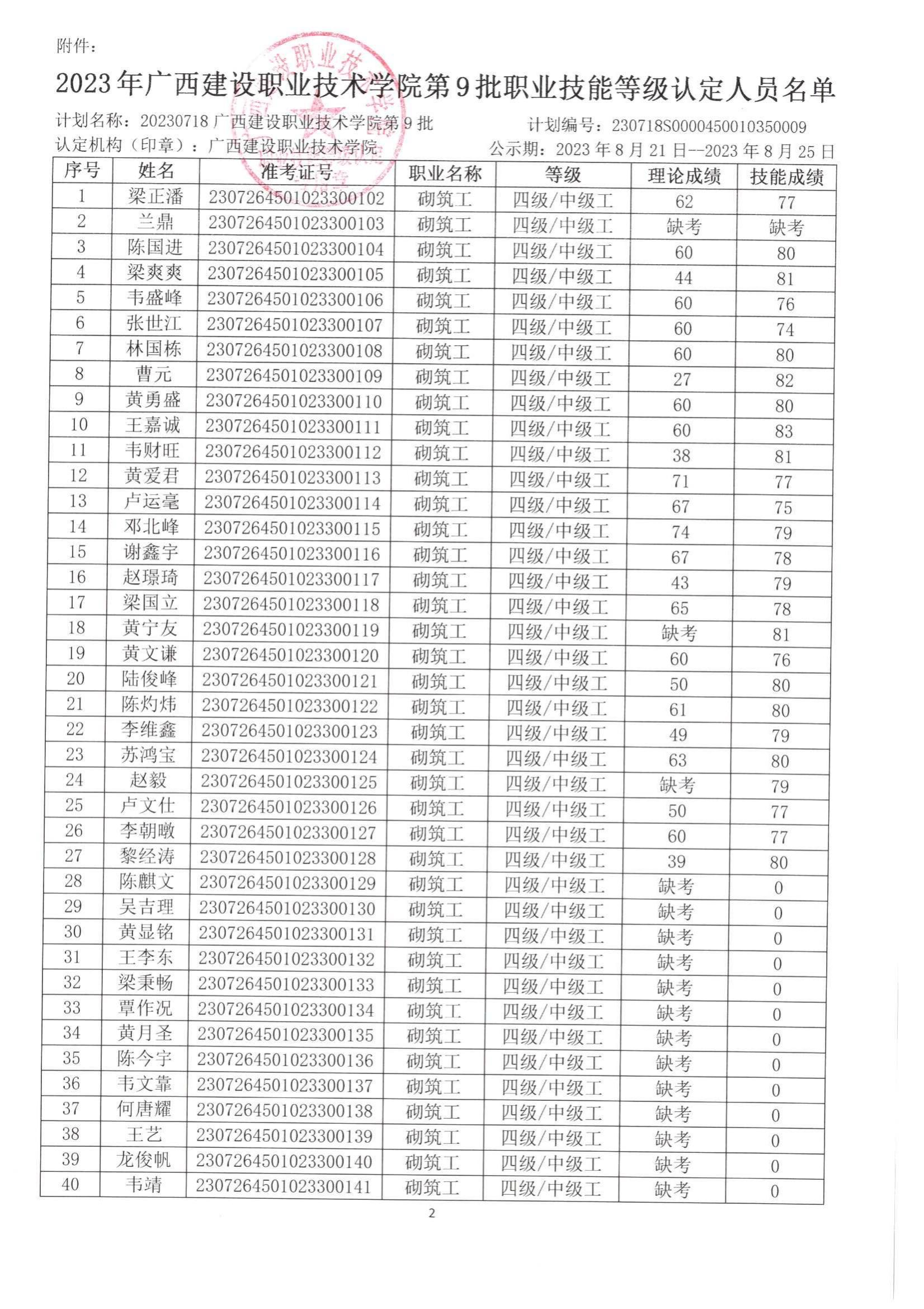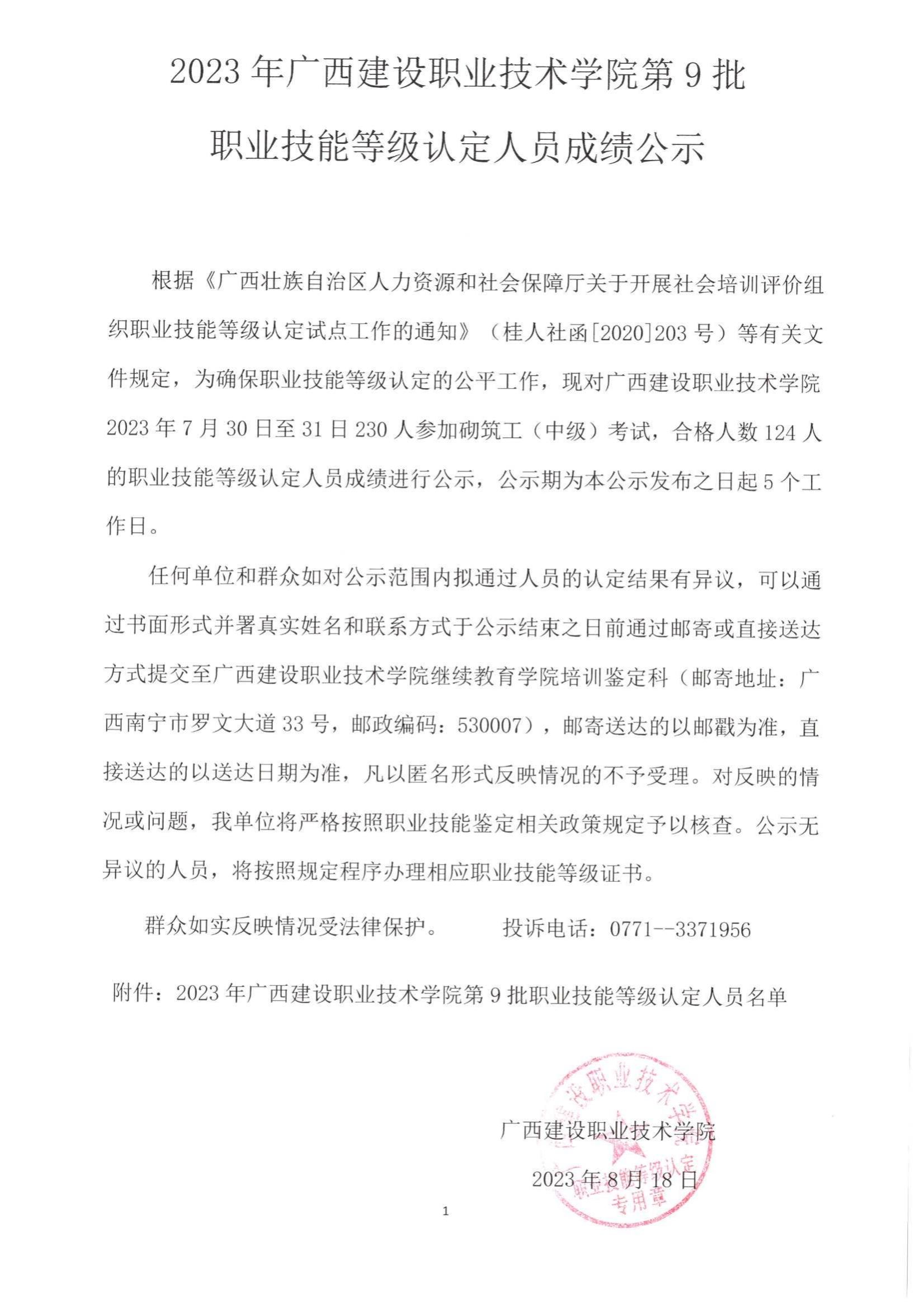 培训信息 当前位置: 首页 >> 培训信息 >> 正文 2023年星空·综合(xingkong)官方网站第9批职业技能等级认定人员成绩公示 发布日期:2023-08-21 点击: 附件【2023年星空·综合(xingkong)官方网站第9批职业技能等级认定人员成绩公示.pdf】已下载次