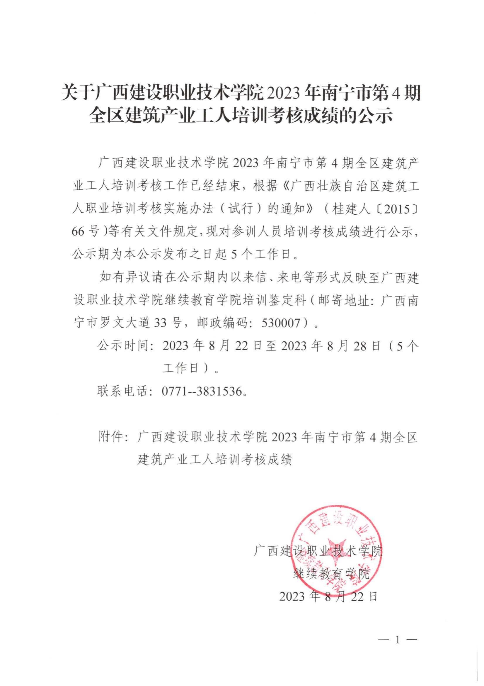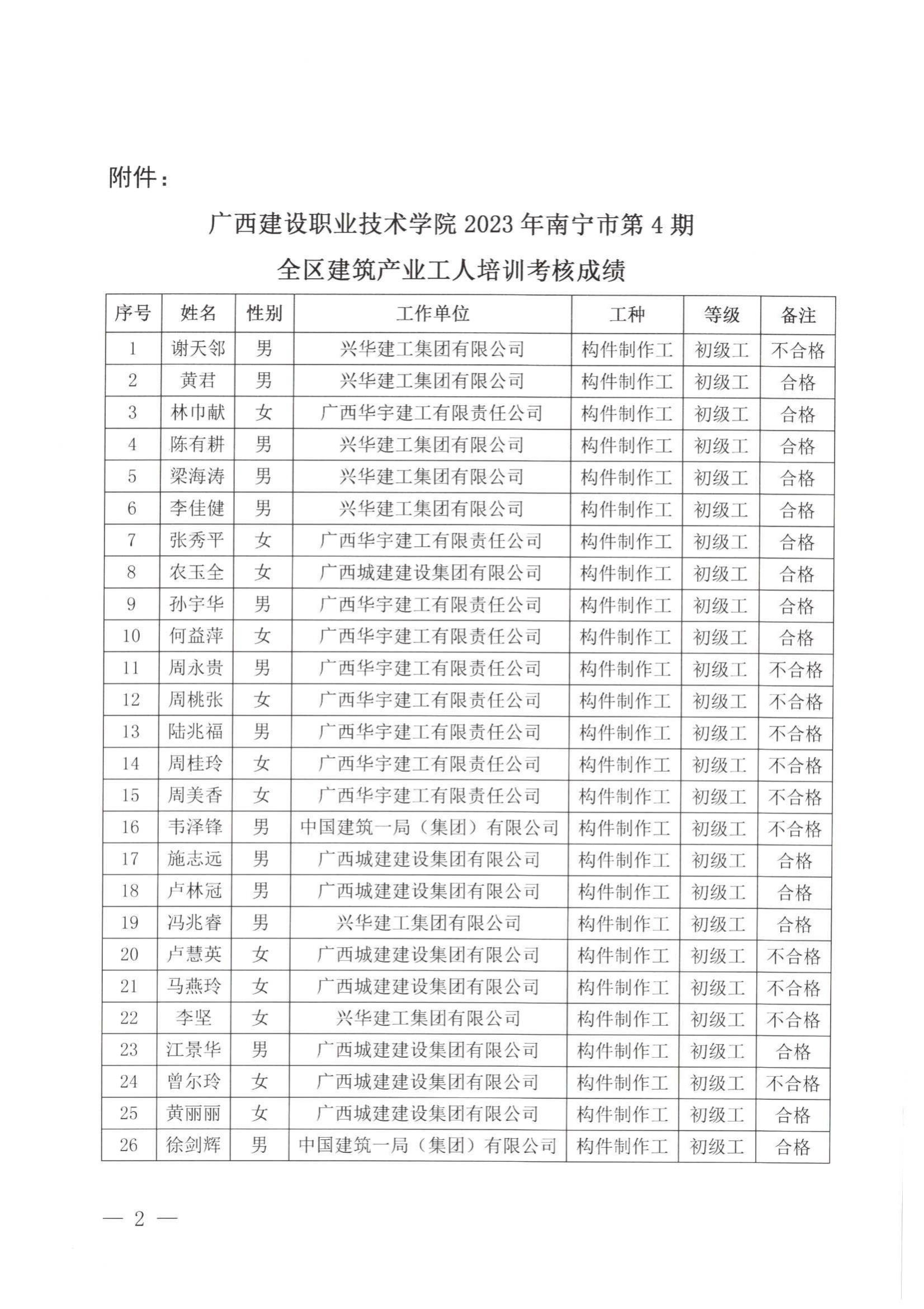 培训信息 当前位置: 首页 >> 培训信息 >> 正文 关于星空·综合(xingkong)官方网站2023年南宁市第4期全区星空·综合(xingkong)官方网站产业工人培训考核成绩的公示 发布日期:2023-08-22 点击: 附件【关于星空·综合(xingkong)官方网站2023年南宁市第4期全区星空·综合(xingkong)官方网站产业工人培训考核成绩的公示.pdf】已下载次