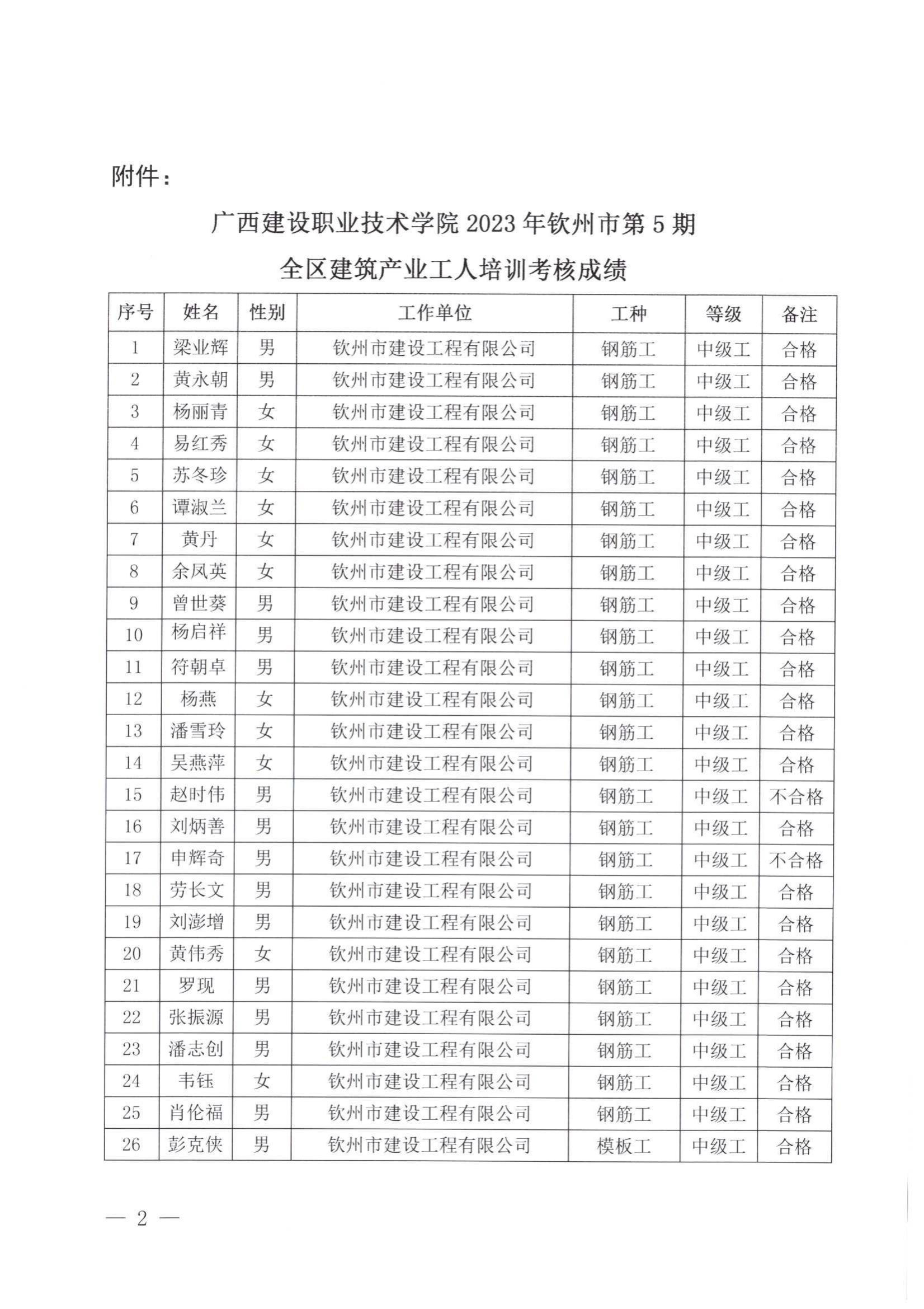 培训信息 当前位置: 首页 >> 培训信息 >> 正文 关于星空·综合(xingkong)官方网站2023年钦州市第5期全区星空·综合(xingkong)官方网站产业工人培训考核成绩的公示 发布日期:2023-09-11 点击: 附件【关于星空·综合(xingkong)官方网站2023年钦州市第5期全区星空·综合(xingkong)官方网站产业工人培训考核成绩的公示.pdf】已下载次