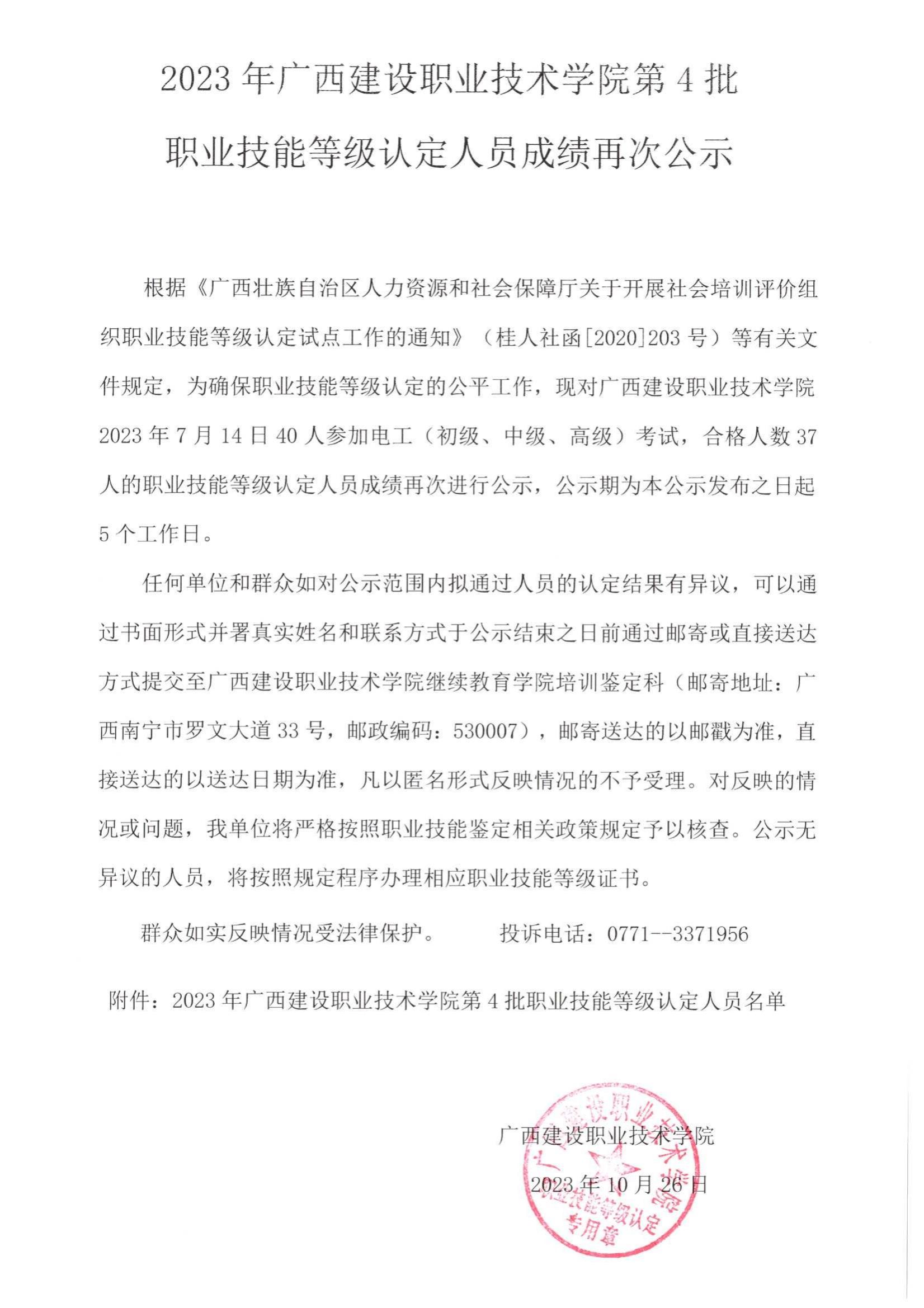 培训信息 当前位置: 首页 >> 培训信息 >> 正文 2023年星空·综合(xingkong)官方网站第4批职业技能等级认定人员成绩再次公示 发布日期:2023-10-27 点击: 附件【2023年星空·综合(xingkong)官方网站第4批职业技能等级认定人员成绩再次公示.pdf】已下载次