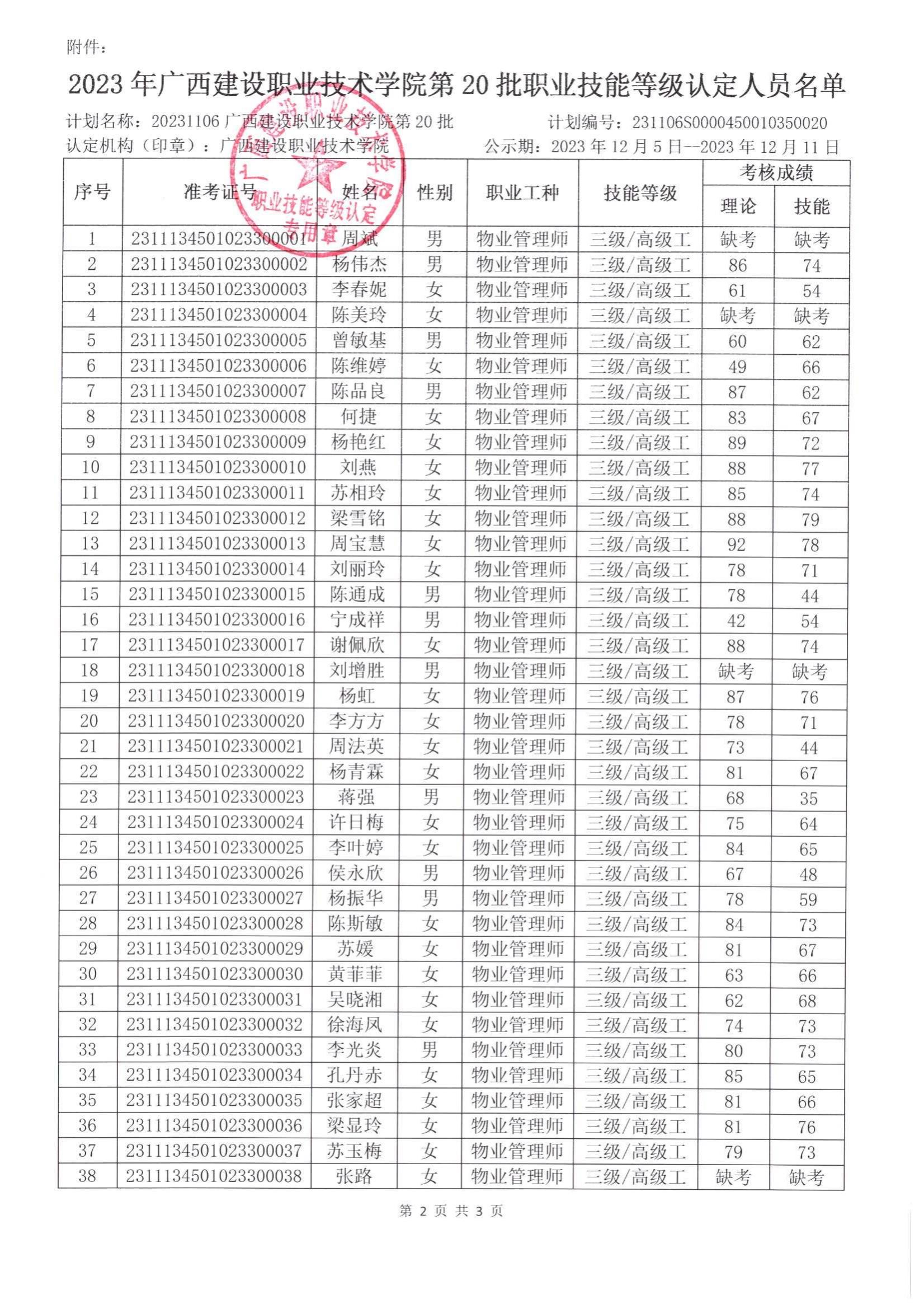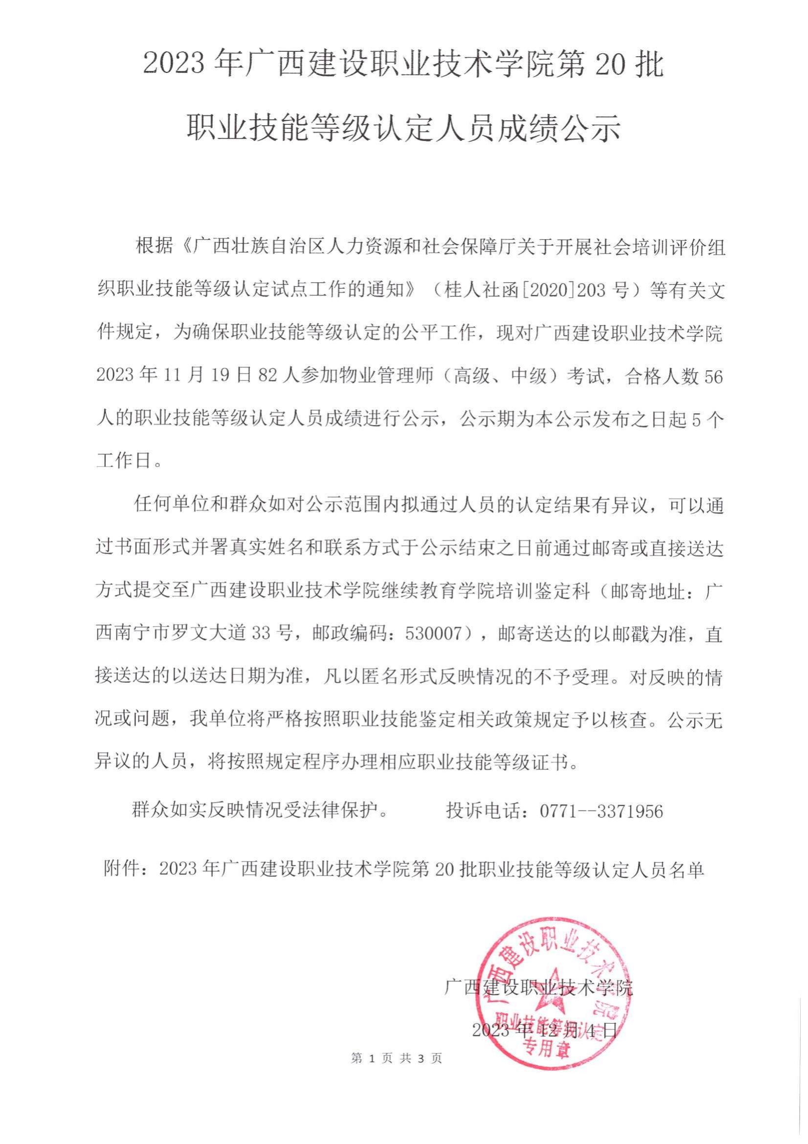 培训信息 当前位置: 首页 >> 培训信息 >> 正文 2023年星空·综合(xingkong)官方网站第20批职业技能等级认定人员成绩公示 发布日期:2023-12-05 点击: 附件【2023年星空·综合(xingkong)官方网站第20批职业技能等级认定人员成绩公示.pdf】已下载次