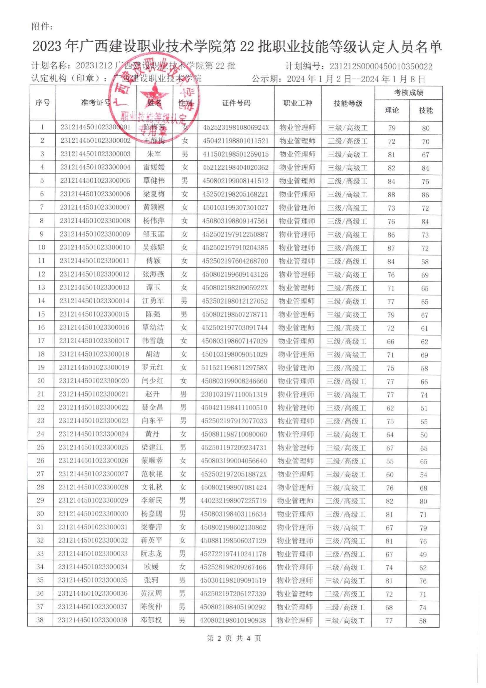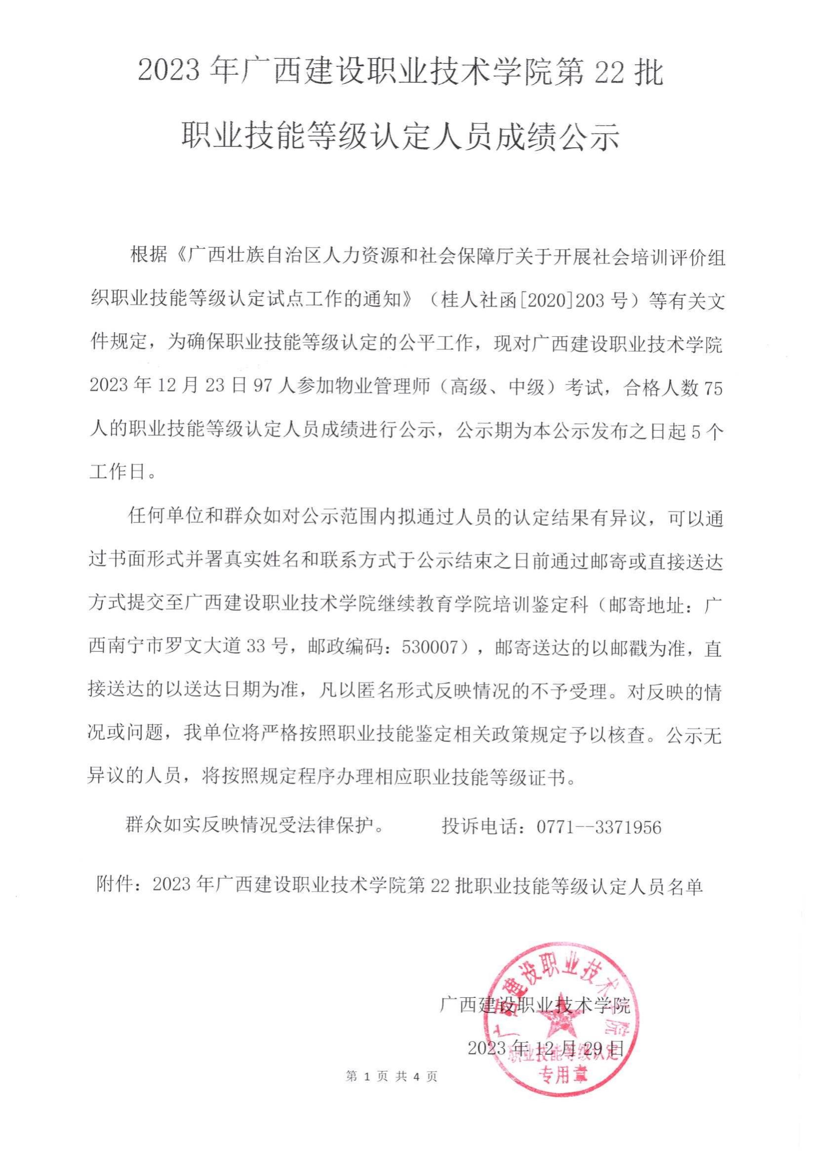 培训信息 当前位置: 首页 >> 培训信息 >> 正文 2023年星空·综合(xingkong)官方网站第22批职业技能等级认定人员成绩公示 发布日期:2024-01-02 点击: 附件【2023年星空·综合(xingkong)官方网站第22批职业技能等级认定人员成绩公示.pdf】已下载次