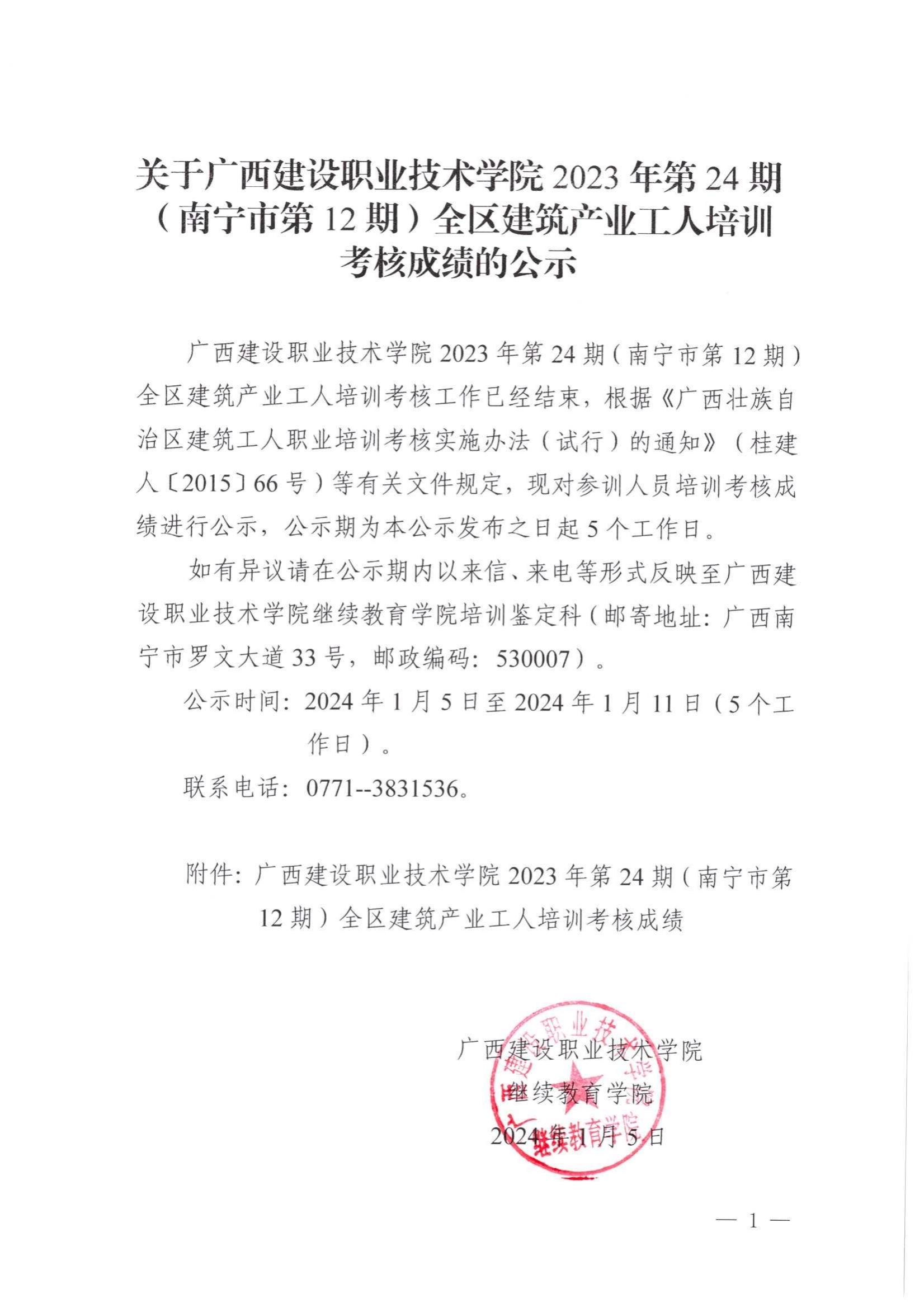 培训信息 当前位置: 首页 >> 培训信息 >> 正文 关于星空·综合(xingkong)官方网站2023年全区星空·综合(xingkong)官方网站产业工人第24期(南宁市第12期)培训考核成绩的公示 发布日期:2024-01-05 点击: 附件【关于星空·综合(xingkong)官方网站2023年全区星空·综合(xingkong)官方网站产业工人第24期(南宁市第12期)培训考核成绩的公示 .pdf】已下载次