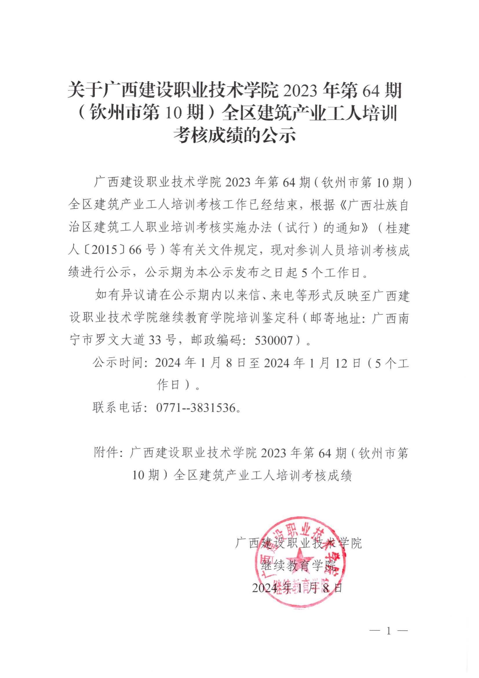 培训信息 当前位置: 首页 >> 培训信息 >> 正文 关于星空·综合(xingkong)官方网站2023年全区星空·综合(xingkong)官方网站产业工人第64期(钦州市第10期)培训考核成绩的公示 发布日期:2024-01-08 点击: 附件【关于星空·综合(xingkong)官方网站2023年全区星空·综合(xingkong)官方网站产业工人第64期(钦州市第10期)培训考核成绩的公示.pdf】已下载次