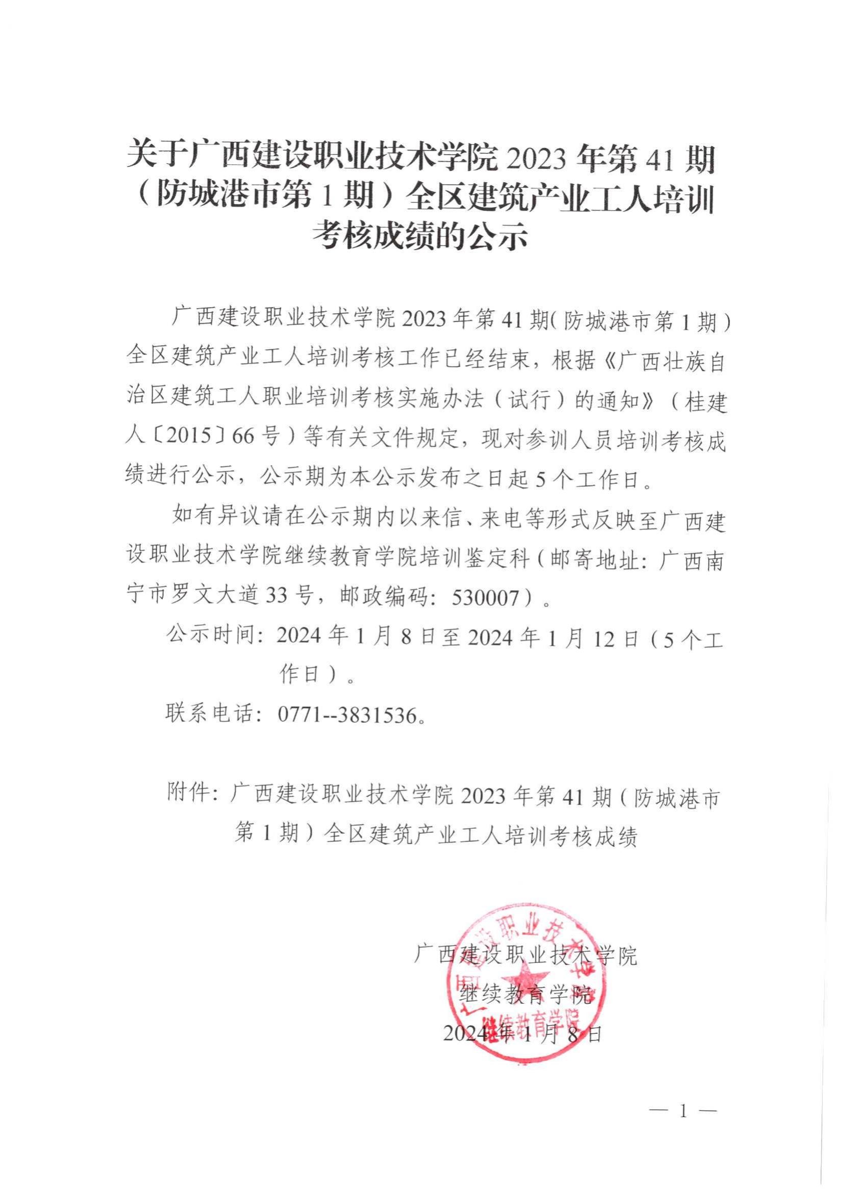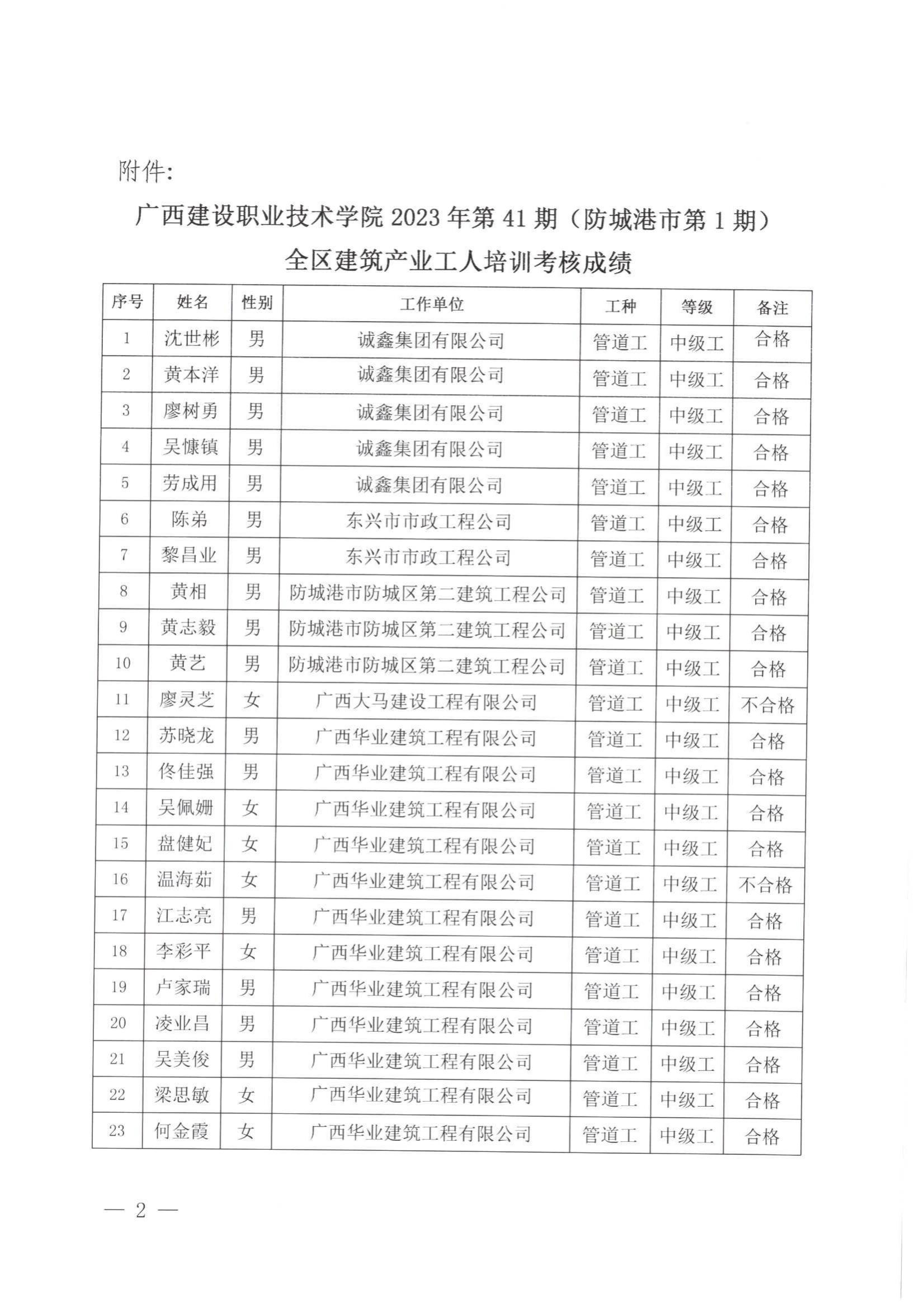 培训信息 当前位置: 首页 >> 培训信息 >> 正文 关于星空·综合(xingkong)官方网站2023年全区星空·综合(xingkong)官方网站产业工人第41期(防城港市第1期)培训考核成绩的公示 发布日期:2024-01-08 点击: 附件【关于星空·综合(xingkong)官方网站2023年全区星空·综合(xingkong)官方网站产业工人第41期(防城港市第1期)培训考核成绩的公示 .pdf】已下载次
