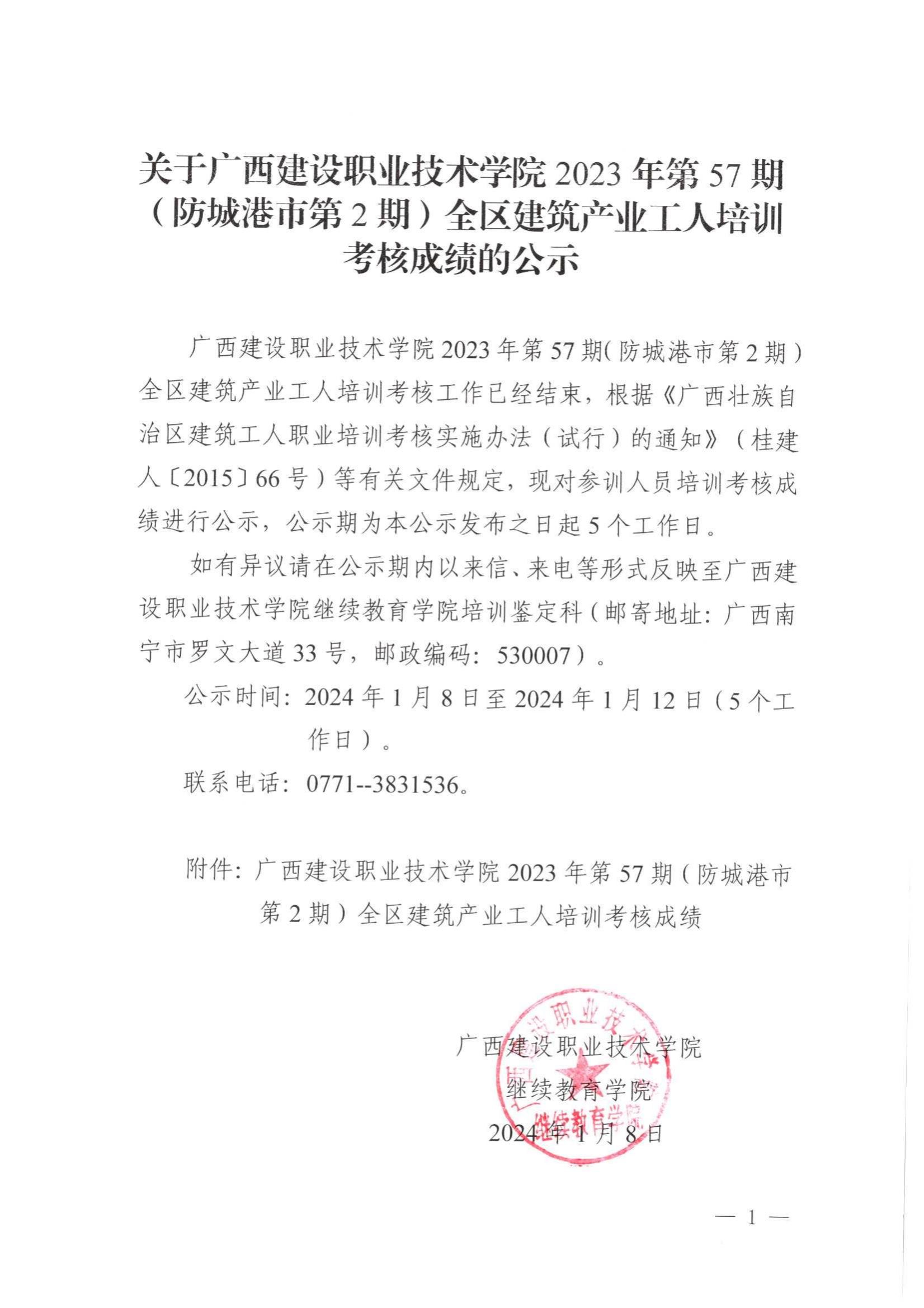 培训信息 当前位置: 首页 >> 培训信息 >> 正文 关于星空·综合(xingkong)官方网站2023年全区星空·综合(xingkong)官方网站产业工人第57期(防城港市第2期)培训考核成绩的公示 发布日期:2024-01-08 点击: 附件【关于星空·综合(xingkong)官方网站2023年全区星空·综合(xingkong)官方网站产业工人第57期(防城港市第2期)培训考核成绩的公示 .pdf】已下载次