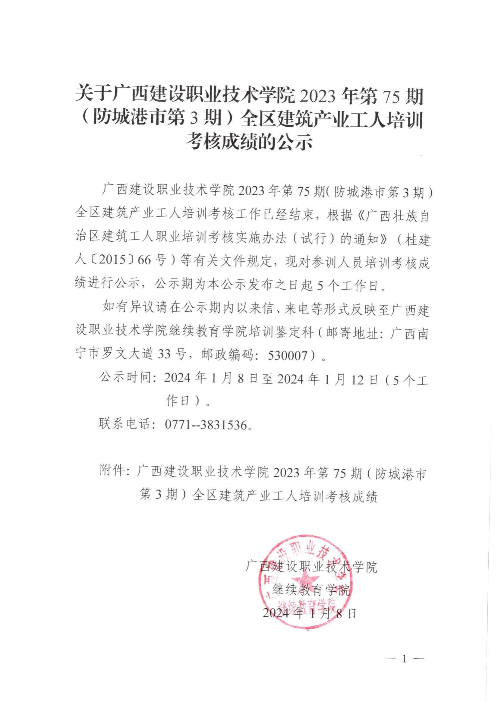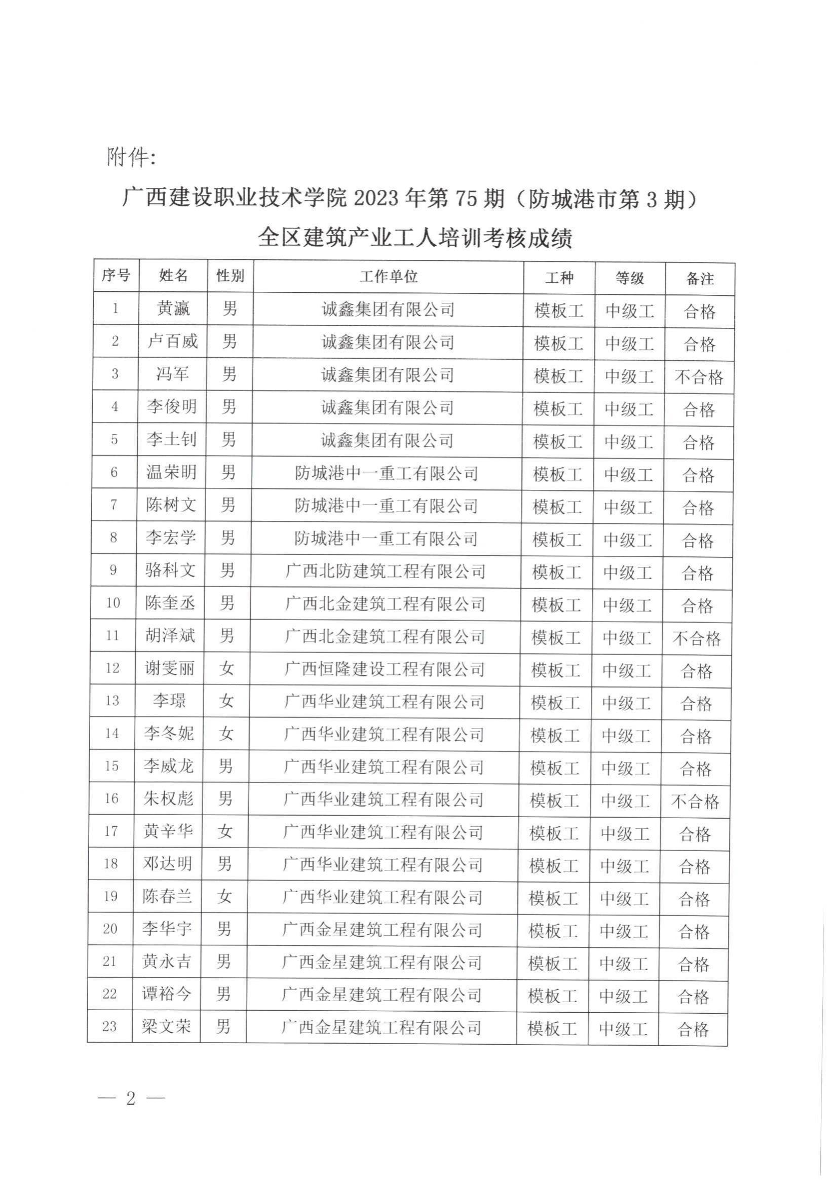 培训信息 当前位置: 首页 >> 培训信息 >> 正文 关于星空·综合(xingkong)官方网站2023年全区星空·综合(xingkong)官方网站产业工人第75期(防城港市第3期)培训考核成绩的公示 发布日期:2024-01-08 点击: 附件【关于星空·综合(xingkong)官方网站2023年全区星空·综合(xingkong)官方网站产业工人第75期(防城港市第3期)培训考核成绩的公示 .pdf】已下载次
