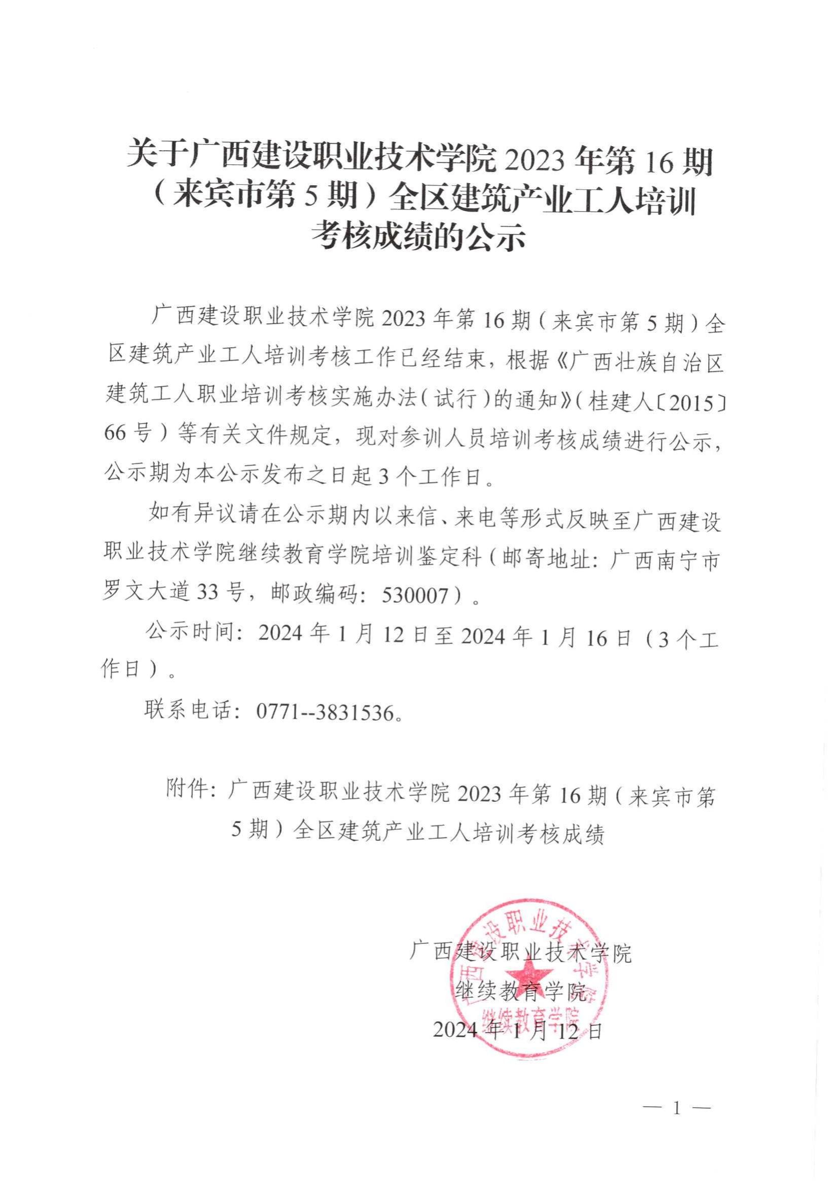 培训信息 当前位置: 首页 >> 培训信息 >> 正文 关于星空·综合(xingkong)官方网站2023年全区星空·综合(xingkong)官方网站产业工人第16期(来宾市第5期)培训考核成绩的公示 发布日期:2024-01-12 点击: 附件【关于星空·综合(xingkong)官方网站2023年全区星空·综合(xingkong)官方网站产业工人第16期(来宾市第5期)培训考核成绩的公示.pdf】已下载次